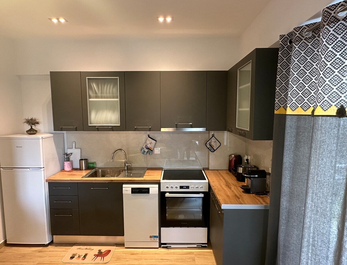 Détendez-vous dans ce logement calme et élégant. Maison de campagne entièrement rénovée, 100 m² avec 267 m² de balcons et jardin, en bordure du beau et calme village de Mulki, à 3,5 km de la mer et des belles plages, et à 1,8 km du site archéologique et du musée de l'ancienne Sikyon. Cette résidence est parfaite pour les familles et les couples. 2 cuisines entièrement équipées, 2 salles de bains entièrement équipées, 2 lits supérieurs pour deux personnes, 2 lits simples et un canapé-lit pour deux personnes, une connexion Wi-Fi haut débit, une télévision connectée.