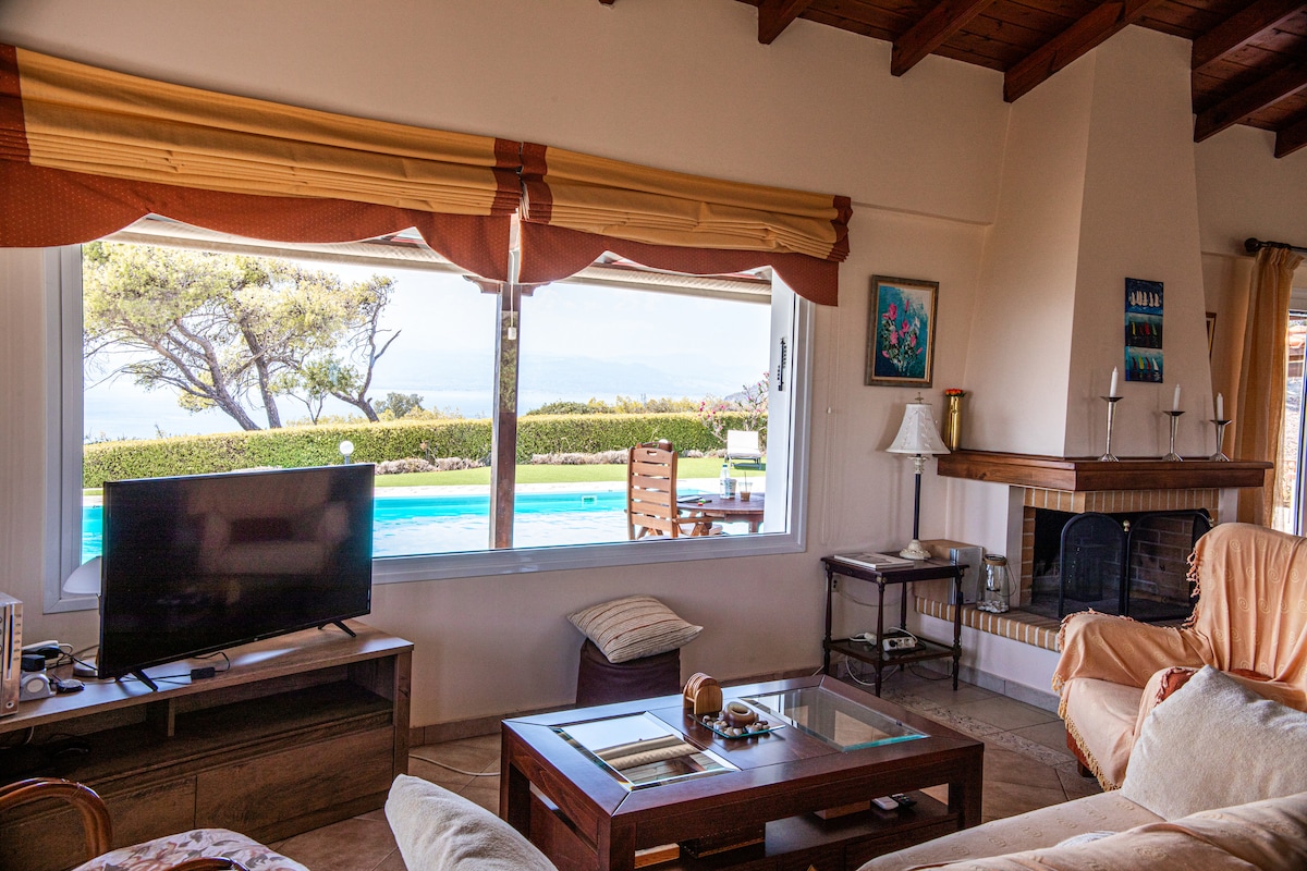 Bienvenue à la Villa Mairi, un complexe privé unique près d'Athènes, avec deux piscines privées (une intérieure et chauffée), une salle de jeux complète et des vues inoubliables sur la mer et la montagne. - 2 piscines privées (intérieure chauffée + extérieure) - Salle de jeux : billard, air hockey, baby-foot, flipper -5 chambres avec salles de bains privées - Sauna, espace barbecue, jardin et salon - Cuisine entièrement équipée - Vue imprenable sur la mer et la montagne - Wi-Fi haut débit et télévision connectée dans chaque chambre - Parking gratuit -1 heure de l'aéroport d'Athènes