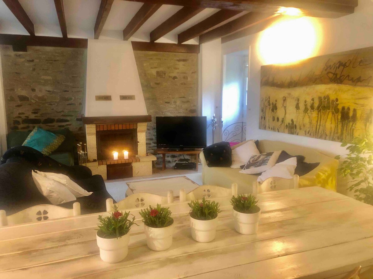 Réservez le petit gîte aussi si besoin 9 personnes. Foyer chaleureux et barbecue au coeur de la campagne. Nous proposons des ateliers ART & MASSAGE look sur lamaisondelartiste.net Un endroit idéal pour passer du temps pour créer et se détendre et/ou comme base idéale pour explorer des sites touristiques populaires comme le Mont St Michel (25 min), Fougières, Saint Malo etc Vélos disponibles. A 5 min du château de la Rouerie. Le canapé-lit est dans le salon pour la 7ème personne