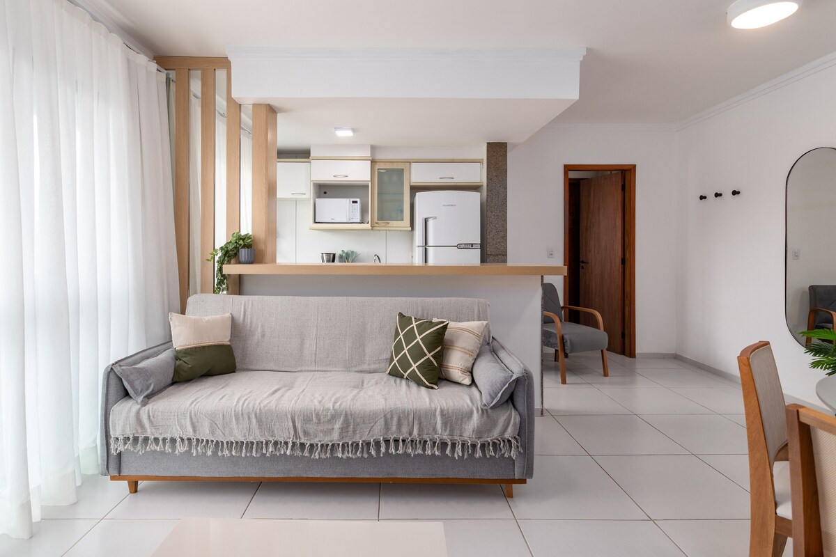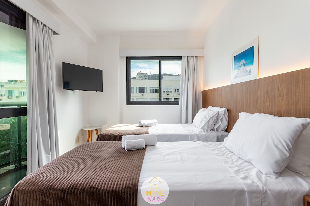 50 m² apartment in Arpoador, just a 2-minute walk from Copacabana, Ipanema, and Arpoador beaches. Located in a new building with a pool, jacuzzi, sauna, gym, free covered parking, and 24-hour concierge. Very safe area in a prime location. Fast fiber internet (430 Mbps), dedicated workspace, Smart TV with Netflix, and a comfortable queen-size bed. Ideal for couples, solo travelers, or families. Designed by two artists who love Rio, the space blends creativity, warmth, and thoughtful design.