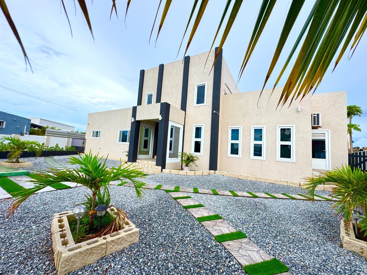 Welcome to Villa Danza-a brand-new luxury 4/4.5 villa in Aruba with a private pool, designed for comfort, and unforgettable island living.Perfect for families and groups,this modern retreat blends design,and an unbeatable location just minutes from Eagle Beach ✔King en-suite bedrooms ✔Designer chef’s kitchen ✔75” Roku Smart TV ✔Professional Blaze BBQ + ice maker ✔Outdoor pergola w/dumbbells & yoga mats ✔Air-conditioned sunroom dining ✔Kids playground ✔Ultra-fast Wi-Fi ✔Walk to Super Foods Plaza