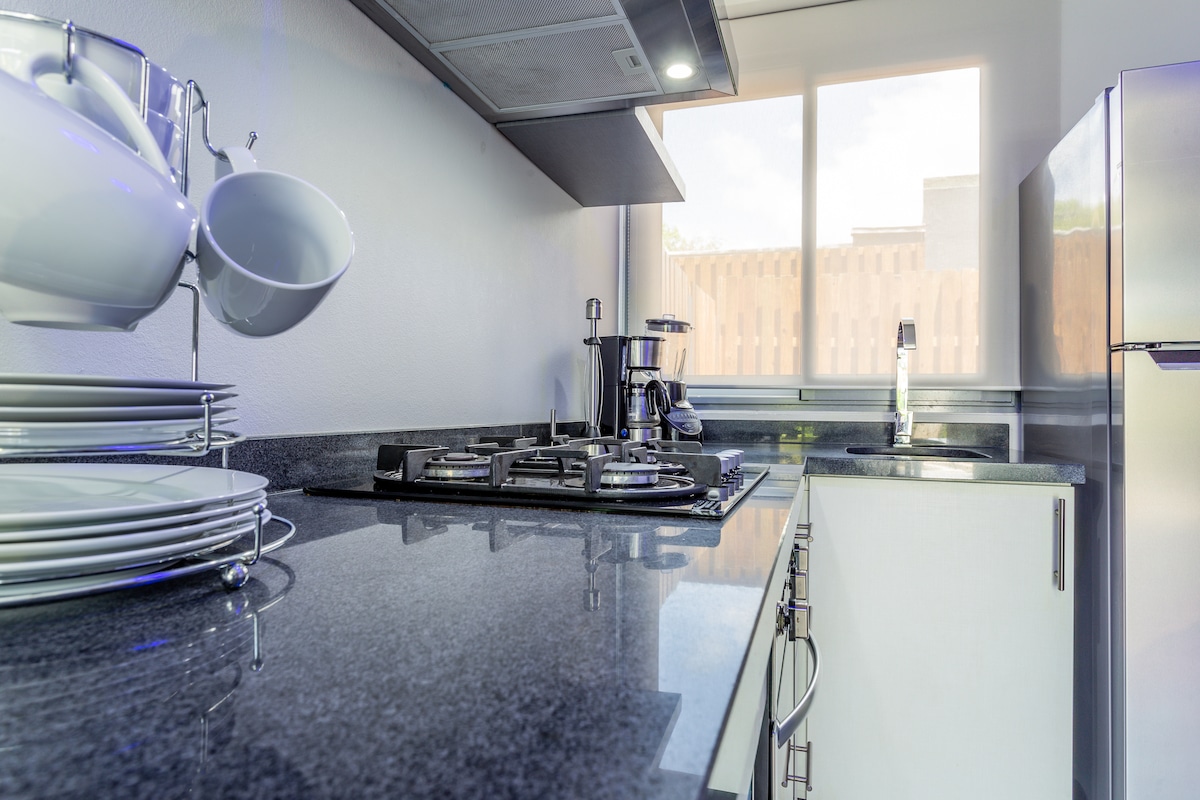 Appartement flambant neuf. Avec cuisine, réfrigérateur et cuisinière. Bel espace extérieur PRIVÉ pour se détendre. À quelques minutes en voiture du centre-ville, des plages et de notre parc national. Vous pouvez prendre une douche chaude :D. WIFI rapide et fiable ! - Eau chaude dans la douche. - Parking privé (clôturé) - Sèche-cheveux - Chaises de plage que vous pouvez emporter à la plage - Épices dans l'appartement (au cas où vous voudriez cuisiner :-) - Serviettes de bain ; - Serviettes de plage ; - Fer et planche à repasser ; - Réfrigérateur - SERVICE IMPÉCCABLE !!!
