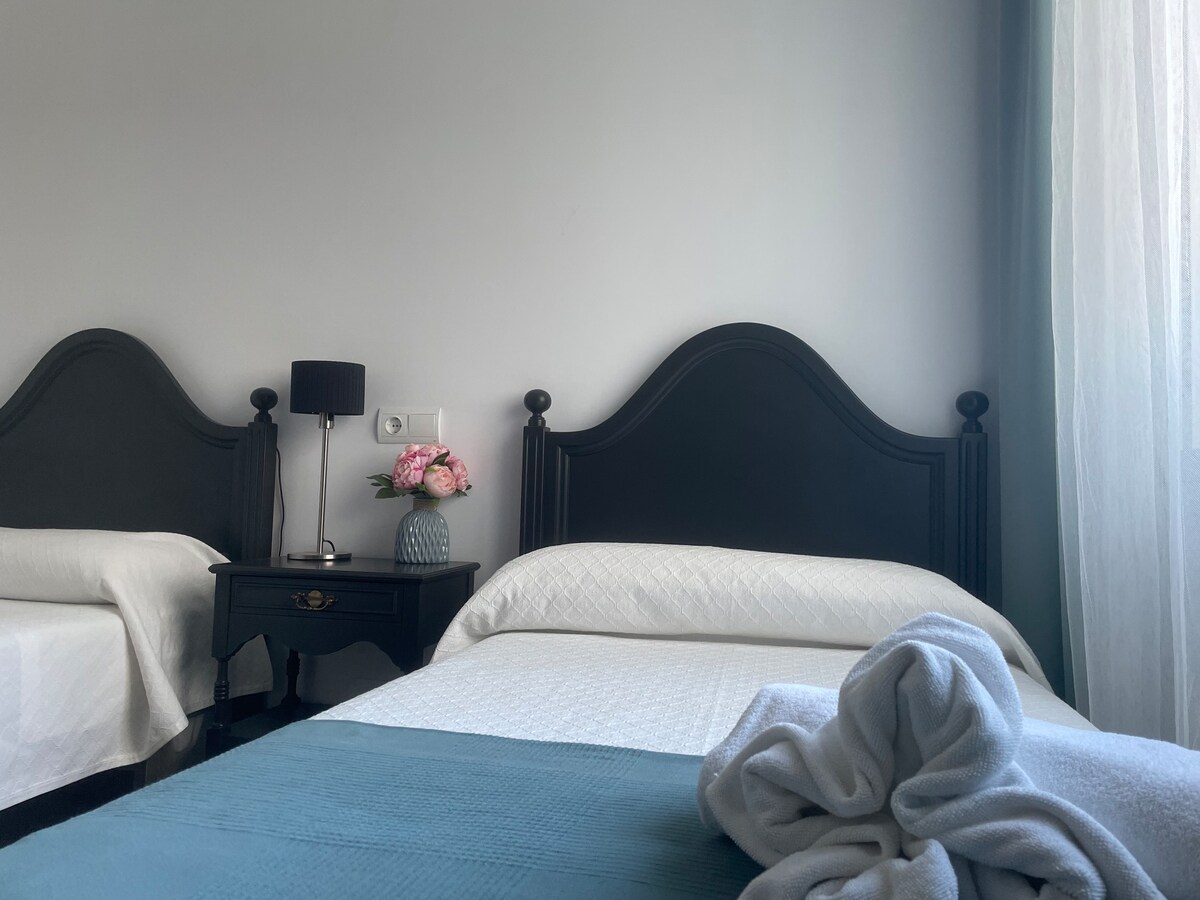 Appartement confortable récemment rénové situé au cœur du Chemin. Près du logement se trouve le centre de santé, plusieurs supermarchés et bars et restaurants de la région. Le logement comprend trois chambres, séjour, salle de bain complète, télé écran plat et WIFI. La cuisine est équipée d'un four, d'un micro-ondes, d'un lave-vaisselle, d'un lave-linge et d'autres outils tels que cafetière ou presse-agrumes. En outre, des serviettes, des draps et des ustensiles de toilette sont également fournis.
