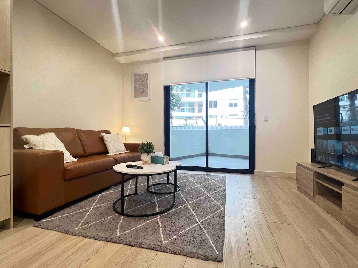 15 minutes directement du quartier des affaires : 3 minutes à pied de la gare d'Ashfield, du centre commercial Ashfield Un lit king size de 1,5 m, un lit simple et un canapé-lit peuvent accueillir 4 personnes, avec un ensemble complet de literie et de serviettes • Climatisation centrale de l'unité entière + place de stationnement gratuite • Cuisine entièrement équipée avec buanderie, lave-vaisselle/four/lave-linge • Sachets de café et de thé gratuits + lit bébé pour la convivialité parent-enfant