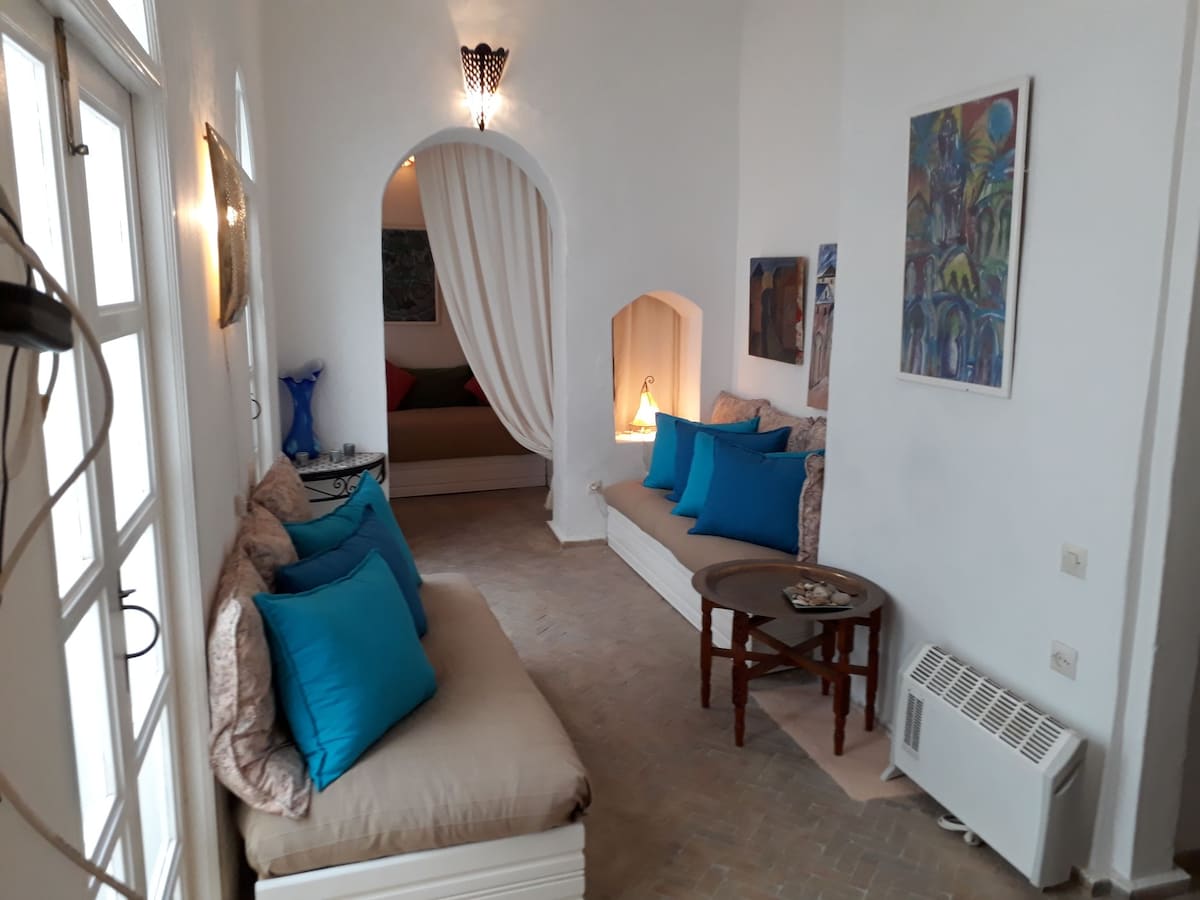 Cette charmante petite maison est située au cœur de la vieille Médina, elle vous donne une sensation agréable dès que vous entrez par la porte. Un sentiment de calme vous accueille à votre arrivée. La cour offre l'endroit idéal pour dîner en plein air et un lieu de sérénité totale avec un salon confortable et une cuisine/salle à manger. Bien que située au cœur de la Médina, la maison est très calme. Les commerces et les bazars sont tous situés à quelques minutes de la porte d'entrée et la plage est à seulement 10 minutes à pied.
