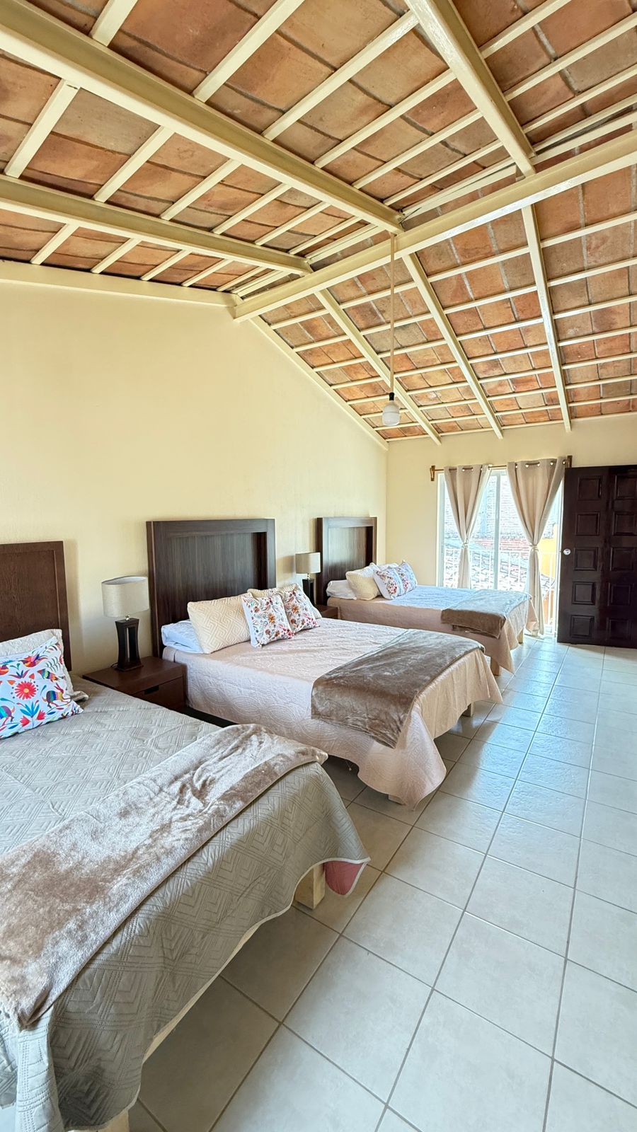 3 chambres, 2 avec lit king size et 1 avec 2 lits simples Toutes les chambres avec un grand placard 2 salles de bains complètes, 1 avec jacuzzi 2 smart TV salon, salle à manger et cuisine équipée avec réfrigérateur, micro-ondes, mixeur et vaisselle complète Balcon avec vue sur le centre. Buanderie avec lave-linge et sèche-linge. Avec la meilleure vue sur le beau village d'Ayutla Il est situé au-dessus de la super pharmacie Ayutla, vous devez monter les escaliers 2 étages. Depuis ce logement central, vous pourrez facilement accéder à tout