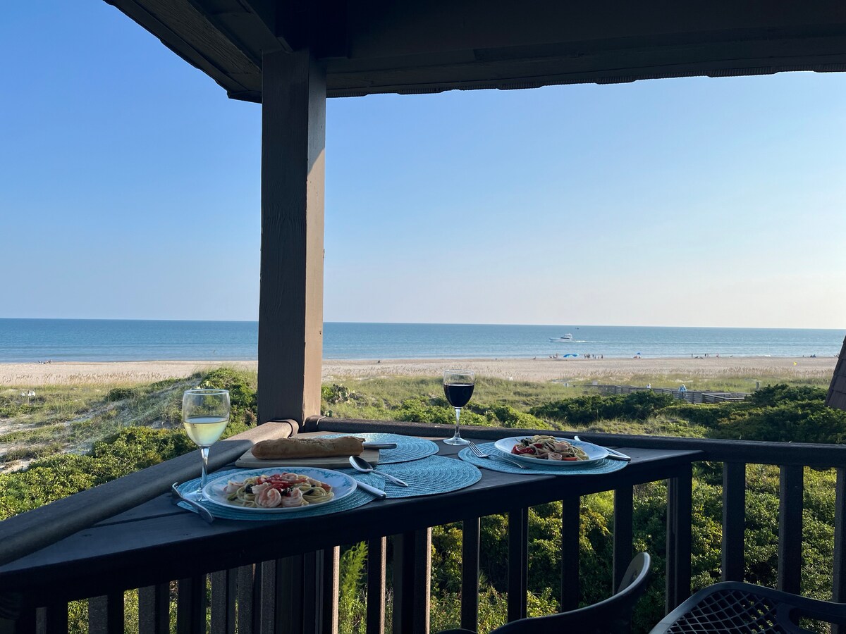 The pool is open for the 2026 season! See the ocean from the living room, master bedroom, and balcony. Two pools, gazebos, charcoal grills, & other great amenities. Condo is on the second floor of the B building (no elevators). Rental rates do not include fees and taxes added by Airbnb. Parking for two vehicles only - no trailer parking allowed. Ideal Retreat for Travel Nurses: Just 20 minutes from Carteret Health Care. All utilities and parking are included. Special rates available.