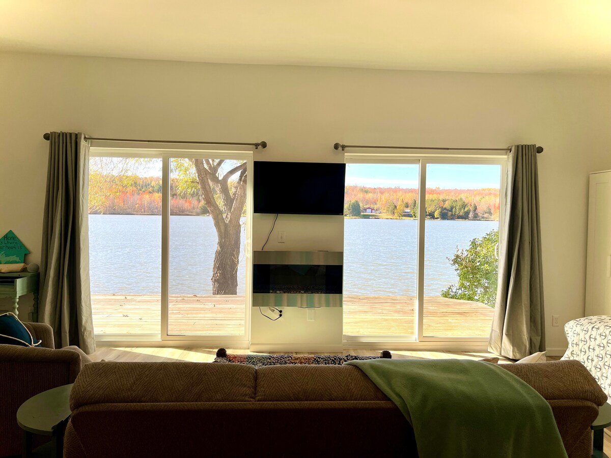 Glamping haut de gamme dans la péninsule de Keweenaw. Cette micro-maison/cabane dispose de deux lofts avec lits queen size, d'une cheminée à bois, d'un quai avec pédalo sur un étang de deux acres, d'un accès à la rivière Pike et de 20 acres de terrain pour la randonnée et les loisirs. Cuisinez dans la cuisine ou au-dessus du foyer extérieur. Profitez d'un sauna au feu de bois et rafraîchissez-vous en plongeant dans l'étang. Apportez une canne à pêche et attrapez le dîner hors de l'étang ou de la rivière! Pas d'eau courante, mais des toilettes sèches intérieures et un fût de pluie/évier.