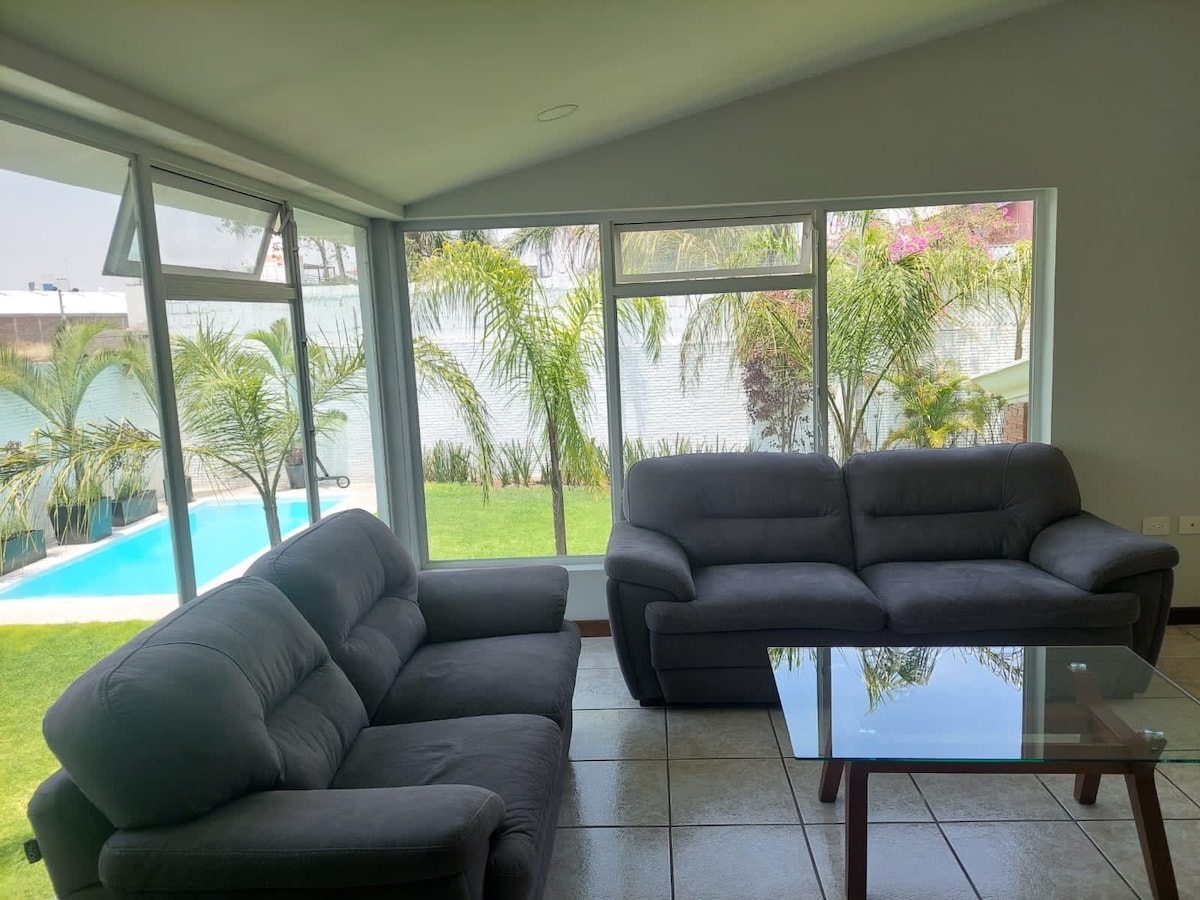 Séjournez dans notre JOLIE maison qui dispose de 3 chambres et d'un jardin avec table en plein air. Nous sommes situés à proximité de quelques-unes des meilleures attractions de cette belle ville magique, nous sommes à deux rues des pépinières d'Atlixco et à trois rues du pied de la colline de San Miguel, où se trouve le belvédère de cristal et où se célèbre le Hey Atlixcayotl, à 1,3 km du zócalo. Si vous souhaitez une facture, demandez-la !