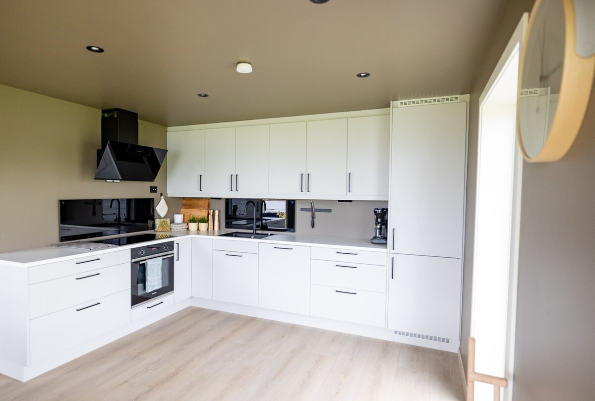 Des vues magnifiques, une belle plage de sable fin, un terrain de randonnée varié et un incroyable trajet en ferry gratuit... c'est le paradis. Détendez-vous et profitez de vos vacances dans cet endroit accueillant et paisible pour les enfants. La vue sur l'océan est presque indescriptible : rêver loin, être fasciné par le ciel et les océans en constante évolution, voir des aigles de mer, des loutres ou des baleines, juste à l'extérieur des fenêtres. Les nuages de tempêtes sombres et les grandes vagues, ou les couchers de soleil flamboyants et les mers calmes sont des souvenirs que vous aurez toujours avec vous. Vacances à la fois corps et âme !