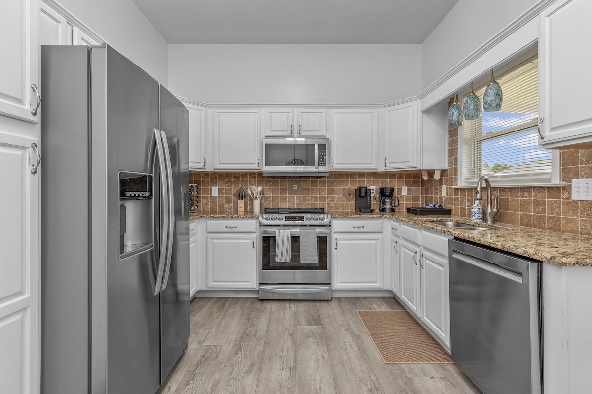 Restez dans le confort et le style à Golden Haven, une retraite spacieuse de 3 chambres à seulement 1 minute à pied du Newton Park récemment rénové, à moins de 10 minutes du parcours de golf RTJ et du 17 Springs, et à 15 minutes de Maxwell AFB. Que vous soyez en ville pour un TDY, un tournoi sportif itinérant, une escapade de golf, une aventure de rafting en eau vive ou une famille en visite, Golden Haven est la base idéale pour chaque type de séjour.