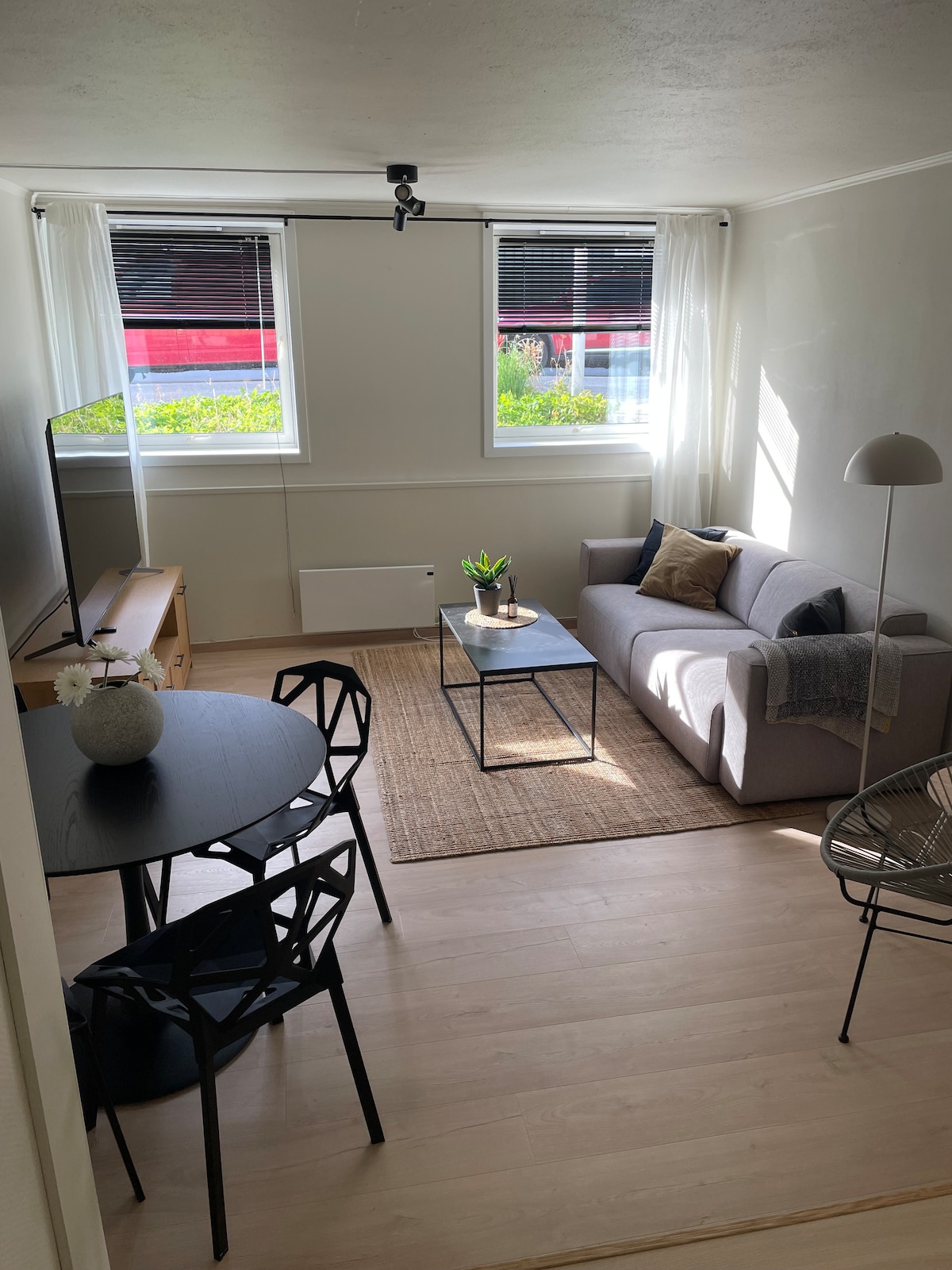 À propos de l'appartement : L'appartement dispose de 1 chambre avec 2 lits. Salon avec canapé-lit double et pompe à chaleur. Salle de bain avec cabine de douche. Micro-ondes et réfrigérateur avec congélateur. Emplacement : central à Vågen. À 7 minutes à pied du centre-ville et de la gare routière, à proximité de Kulturfabrikken, Kranaskjæret, musée Mellomverftet, etc. À 250 mètres de l'épicerie et de l'arrêt de bus les plus proches. À distance de marche de Badeland et Braatthallen. Parking : Parking gratuit dans la rue ou sur le parking à 250 mètres.