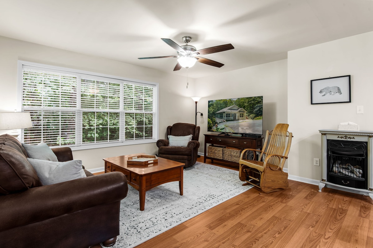 Niché au cœur des montagnes Blue, « Grandfather Cottage » offre une retraite confortable parfaitement située entre Boone et Banner Elk. Que vous soyez en visite pour une aventure en plein air, des attractions locales ou une escapade relaxante, cette maison vous met à proximité de tout. 3 chambres privées, 2,5 salles de bain, WIFI, peut accueillir 8 personnes et à distance de marche de Grandfather Vineyard and Winery. À proximité du ski, Alpine Wilderness Coaster, exploitation minière de pierres précieuses, randonnée, pêche, tubing, et plus encore.