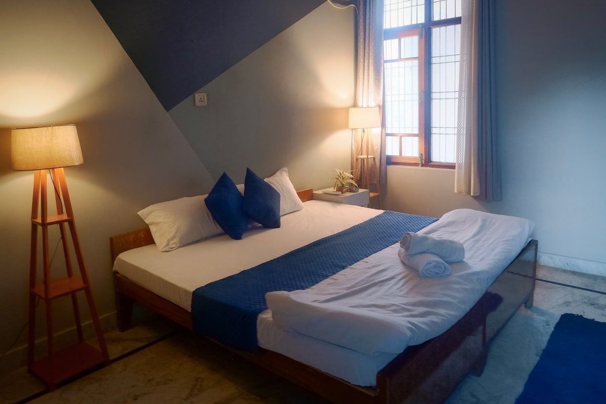 Rapprochez-vous de la nature, du confort et de la commodité dans notre charmant chalet Bluebell ! À 10 minutes de l'aéroport, à 20 minutes de la gare de Charbagh, juste derrière le célèbre centre commercial Lulu, à deux pas du centre commercial Palassio, à seulement 500 mètres de l'hôpital Medanta, notre chalet est stratégiquement situé pour un séjour inégalé. Situé au cœur de Sushant Golf City, il constitue le point de départ idéal pour votre visite à Lucknow ! En plus d'un lit king size, vous obtenez deux lits pliants supplémentaires.