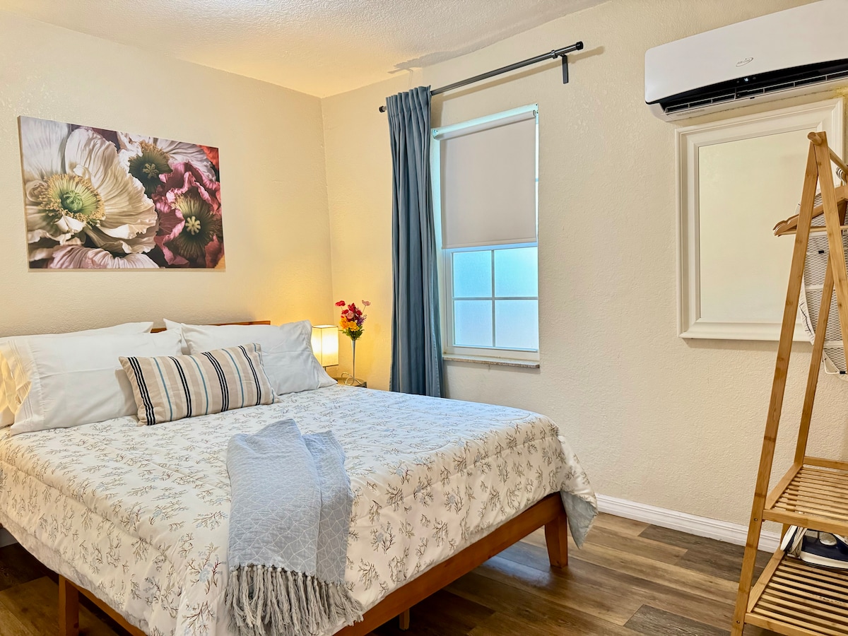 Private Studio Near Orlando Airport | King Bed Stay in this cozy private studio, just 15 minutes from Orlando International Airport. Enjoy a king-size bed, a kitchenette with a microwave and fridge, and a mini AC unit for your comfort. Fast and reliable WIFI. The fenced patio with a gated entry provides added privacy and security, and you’ll have a designated parking spot. Perfect for business or leisure, located in the heart of Orlando. NOTHING SHARED.