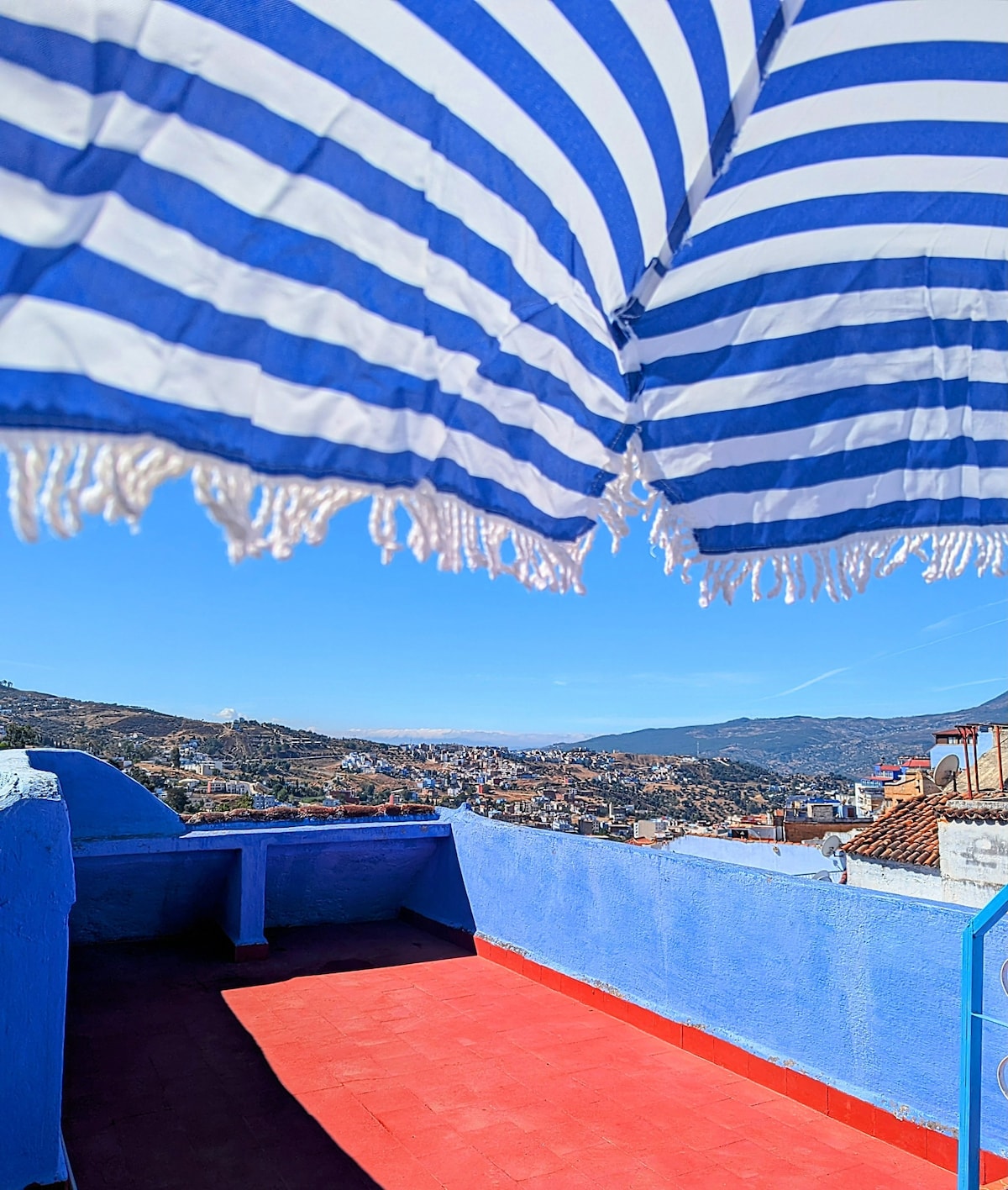 Notre maison est située dans un quartier calme dans la médina bleue et pourtant tout est à proximité. Elle se trouve à cinq minutes à pied de la cascade et du grand marché. La cuisine est équipée de tout, il y a une baignoire qui est merveilleuse en hiver. Sur la terrasse, vous êtes complètement hors de la vue de tout le monde et vous avez une vue sur les montagnes et la mosquée espagnole. En hiver, il y a aussi un poêle. Vous êtes au Maroc et pourtant vous avez le confort de la maison.