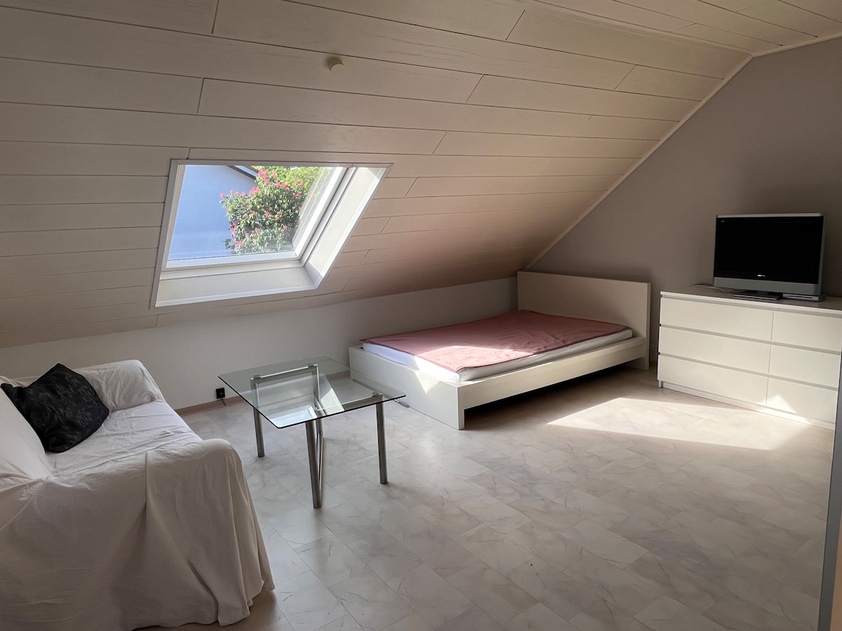 Notre appartement de vacances est situé au dernier étage de notre bungalow. Il se compose d'une chambre avec un coin salon, un coin chambre et un coin cuisine. Il y a aussi la salle de bain. (Appartement d'une pièce) Vous pouvez y accéder par la porte d'entrée principale de notre maison, par le couloir commun et l'escalier vers le haut, par notre galerie. À l'étage supérieur, seuls nos invités vivent, il est également verrouillable avec une clé séparée. La maison est située dans un quartier résidentiel calme.