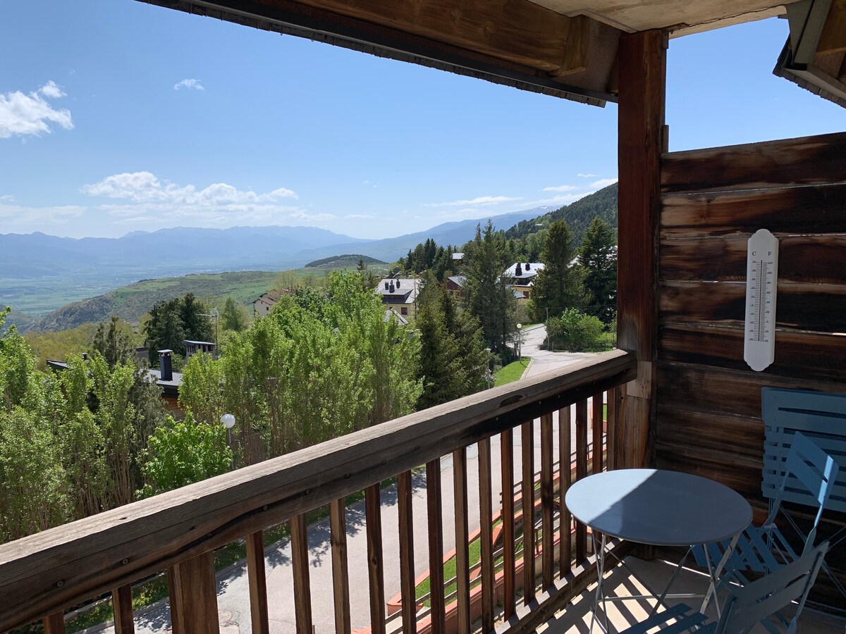 Agréable studio a proximité immédiate du centre-ville de Font-Romeu (à 5 minutes à pied de La Poste). Vous bénéficierez d'une des plus belles vues de Font-Romeu, sur les vallées d’Eyne et de la Sègre, bordées par la Cambre d'Aze et le Puigmal. Exposé plein Sud, vous pourrez admirer les couchers de soleil tous les soirs teintant la vallée d'une lumière rouge très chaleureuse. Studio entièrement équipé, vous passerez des vacances à la montagne des plus agréables pour des souvenirs inoubliables !