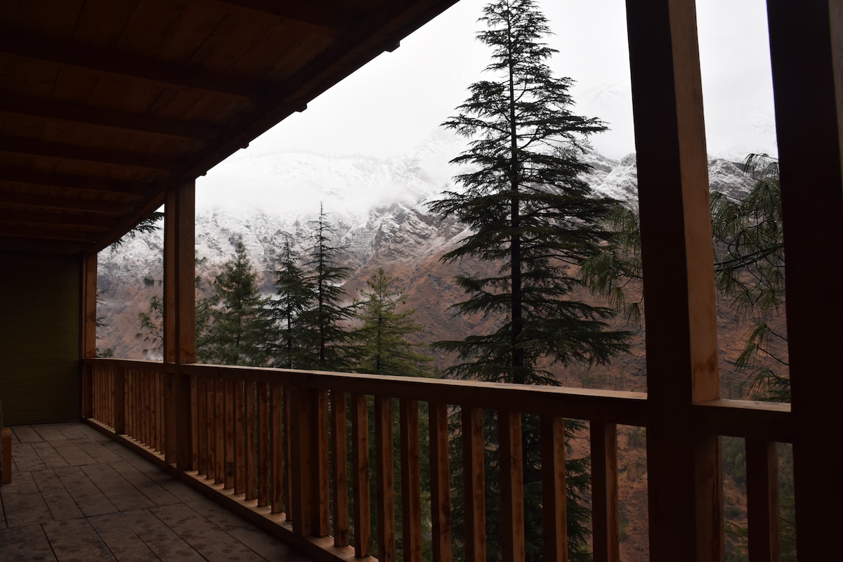 Cette cabane en bois confortable et économique dans la belle vallée de Deohari/Sainj offre une expérience proche de la nature. Vous pourrez profiter de la vue imprenable sur les glaciers enneigés depuis le luxe de votre lit doux et confortable ou explorer les incroyables randonnées vers les montagnes, les cascades et les prairies environnantes. Venez savourer la magie de la nature avec toutes les commodités de base pour une expérience inoubliable à chérir toute une vie !