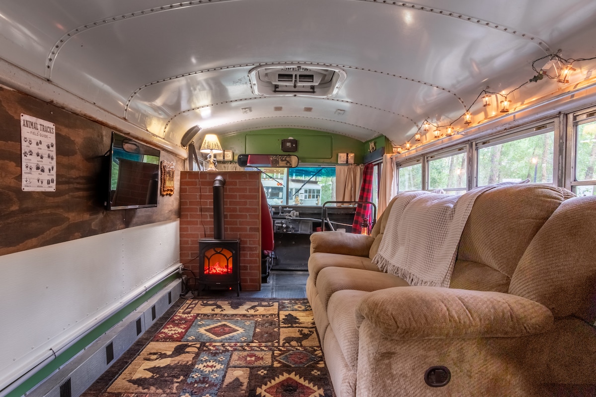 Découvrez le charme rustique de cet hébergement unique en bus (nommé Timber) à Magic Acres Farm, idéalement situé à quelques minutes de la plage. Profitez d'une ambiance de camp avec des équipements modernes et de charmants animaux. Une courte promenade vous mènera à votre propre salle de bain privée et à une douche extérieure sous les étoiles scintillantes. Détendez-vous dans votre coin salon isolé ou rejoignez d'autres personnes autour du feu commun près du chêne massif. Rencontrez nos sympathiques chèvres et nos ânes miniatures, qui agrémenteront votre séjour de leur charme.