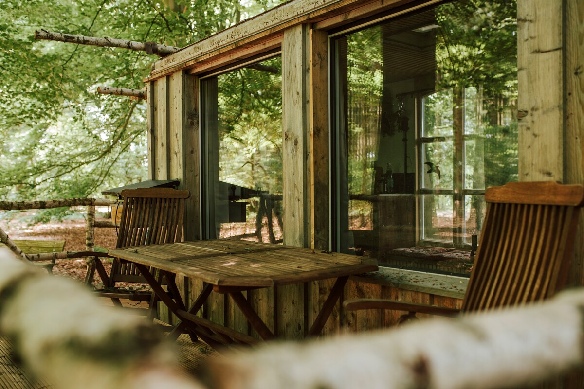 Maison de vacances dans la verdure avec une attention portée aux détails (56 m²), vue sur les champs, les enclos pour chevaux et la forêt - pas de ghetto de village de vacances ;-) Terrasse de 25 m² orientée ouest avec des couchers de soleil spectaculaires, sinon une cheminée confortable et une connexion Wi-Fi rapide pour le mauvais temps 2 min de la forêt, idéal pour les chiens, les promenades en forêt ou le VTT Pour les enfants : aire de jeux, piscine et zoo à 5 minutes All in : pas de frais supplémentaires pour les chiens, les personnes supplémentaires (max 4), les serviettes ou les draps
