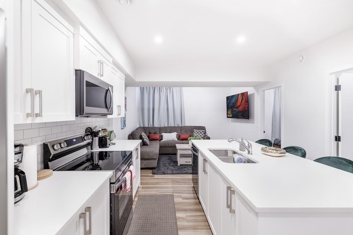 Bienvenue à Luxury Haven by Kc & Flo Cette élégante suite au sous-sol de 2 lits et 1 salle de bain à Livingston NW Calgary dispose d'une décoration dorée et noire, d'une connexion Wi-Fi, d'une cuisine complète, d'un lave-linge/sèche-linge, et plus encore. À seulement 5 minutes de No Frills, 10 minutes de Walmart/Dollarama, et à quelques pas des arrêts de bus et des terrains de jeux. Quartier familial près du populaire Livingston Hub. Confort, classe et commodité en un seul endroit !