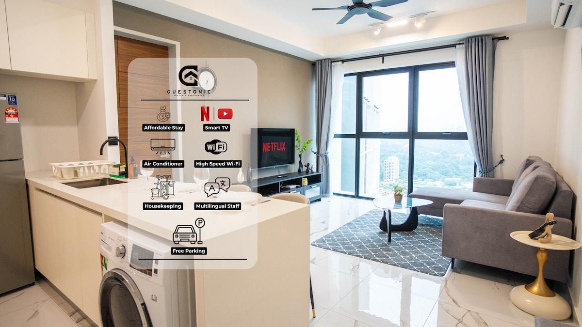 Welcome to Guestonic cozy & stunning 1-Bedroom Suite, hotel-inspired apartment nestled in the vibrant heart of Bangsar that offers you an amazing way to escape from hustle and bustle of stressful life in 5☆ style! The stylish home is decorated thoughtfully that give you the ambience of home and provide the utmost comfort for your stay. Perfectly suited for friends gathering, tourists, couples, families or business travellers who look for a relax environment, a short getaway or a fun gathering.