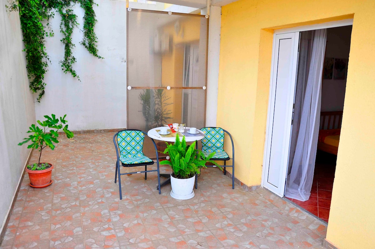 Discover our spacious 2-person apartment with a fully equipped kitchen, private bathroom, and charming terrace. Nestled in a tranquil neighborhood, it offers secure parking and is just 150m from Šušanj Train Station and a mini-market. The beach and city center are a short 20-minute stroll away. Ideal for a relaxing retreat or exciting adventure with family or friends. Book now for an unforgettable stay!
