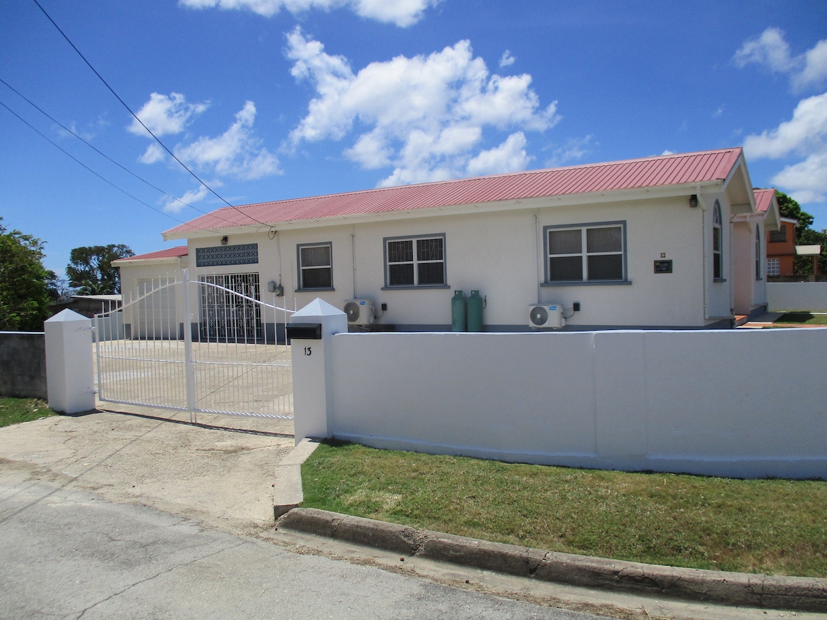 À quelques pas du spot de surf pour débutants le plus populaire de la Barbade, Freights Bay à Atlantic Shores, Christ Church. Ce petit bungalow lumineux et propre est privé, aéré et sécurisé dans un quartier haut de gamme idéal pour les amateurs de marche ou de jogging. À 8 minutes à pied d'Enterprise Beach (alias Miami Beach) et à 10 minutes à pied du marché aux poissons d'Oistins, un endroit populaire pour le poisson local, la musique et la culture le vendredi soir. Épicerie, banque et restaurants à proximité.