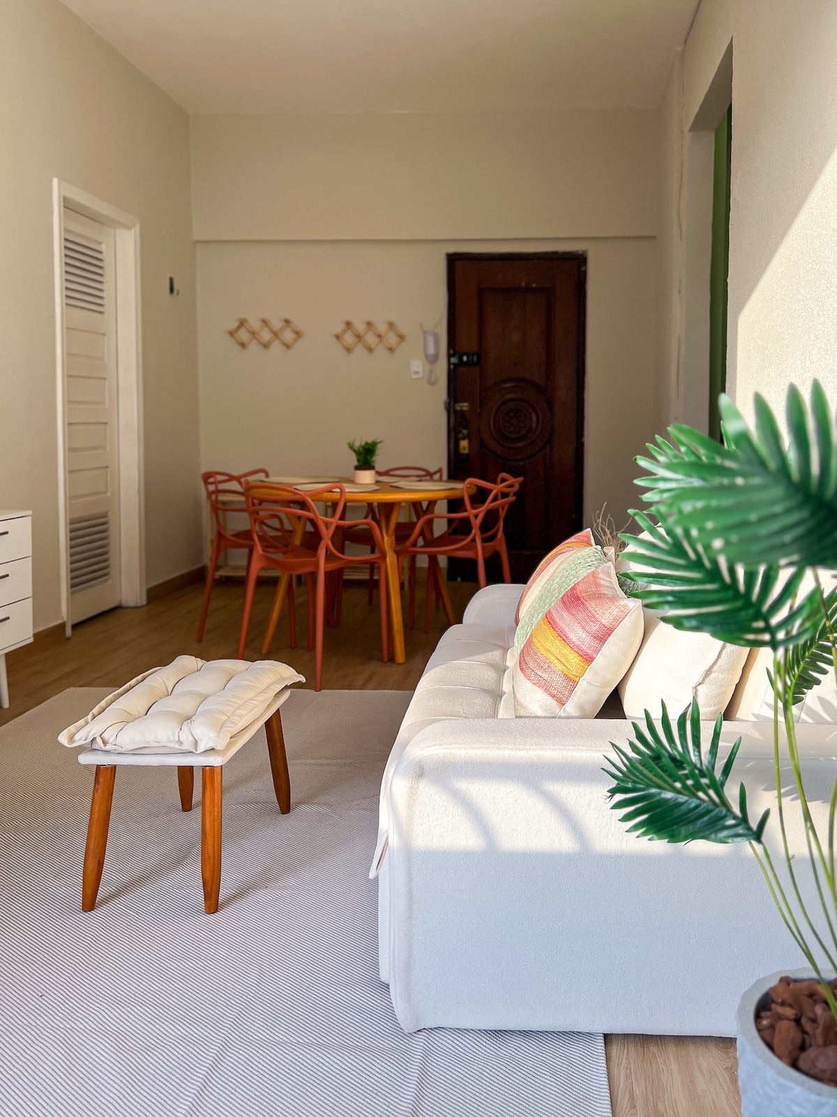 Excelente localização, apartamento espaçoso. Bairro central, a curtas caminhadas você chega a pontos turísticos; facilidade de transporte público e serviços. Cômodos amplos, ventilados e com boa iluminação natural. Quartos com ar condicionado. Cozinha completa e lavanderia. Estrutura para home office ( Internet de banda larga e desktop). Perfeito para famílias pelo espaço e segurança. Check-in ou check-out antecipado - taxa de R$150,00 a serem cobrados através do Airbnb