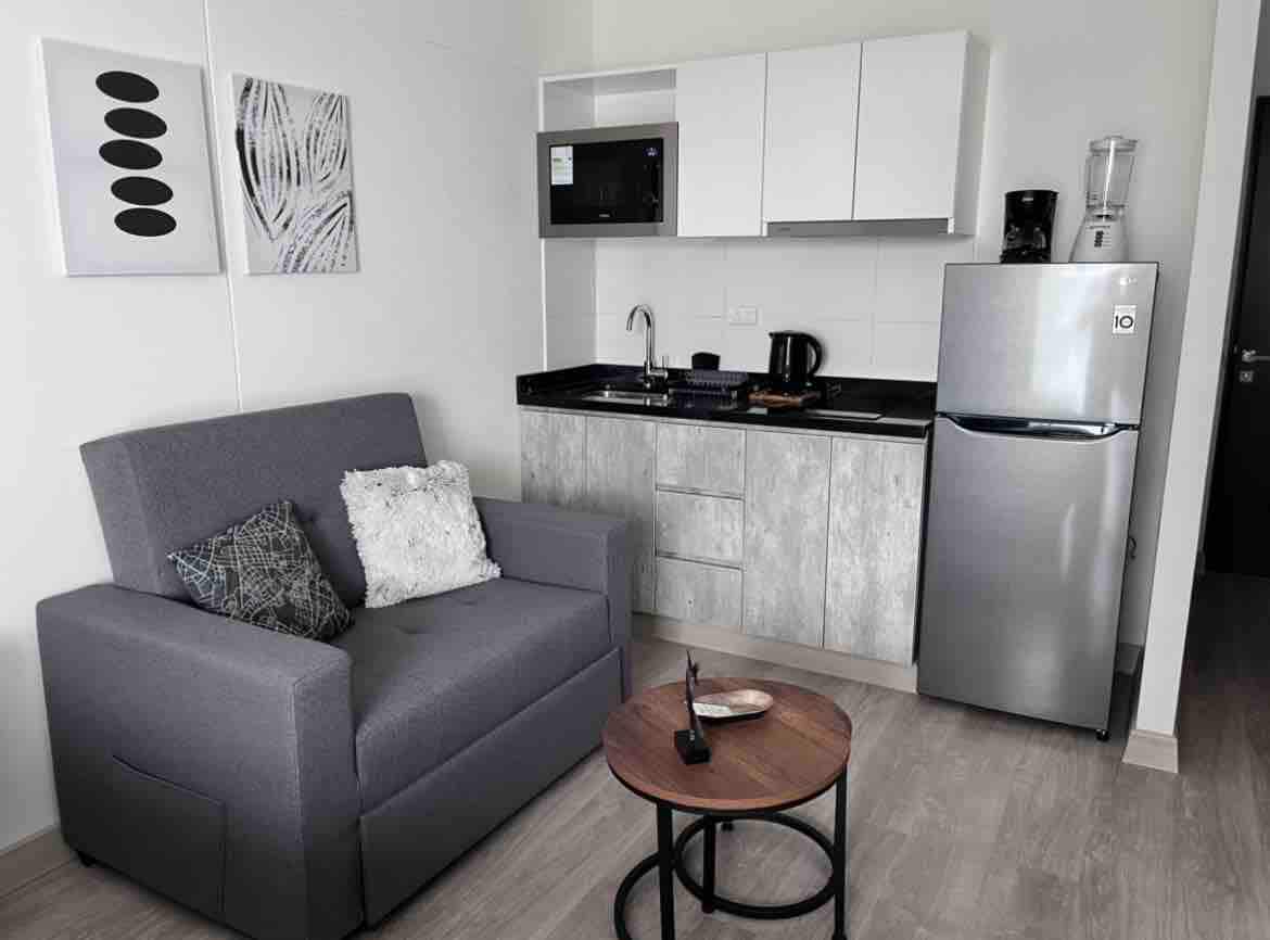 Appartement spacieux et élégant au cœur de Barranco. Emplacement privilégié : à quelques pas des principaux sites touristiques de Barranco et Miraflores, des meilleurs restaurants, bars et galeries d'art. Chambre principale : lit king-size et grand walking closet. Espace ouvert et lumineux : Salon et kitchenette avec lumière naturelle. Garage privé : sous réserve de disponibilité Espaces communs : salle de sport, ambiance de réunion et aire de jeux pour enfants. Style minimaliste.