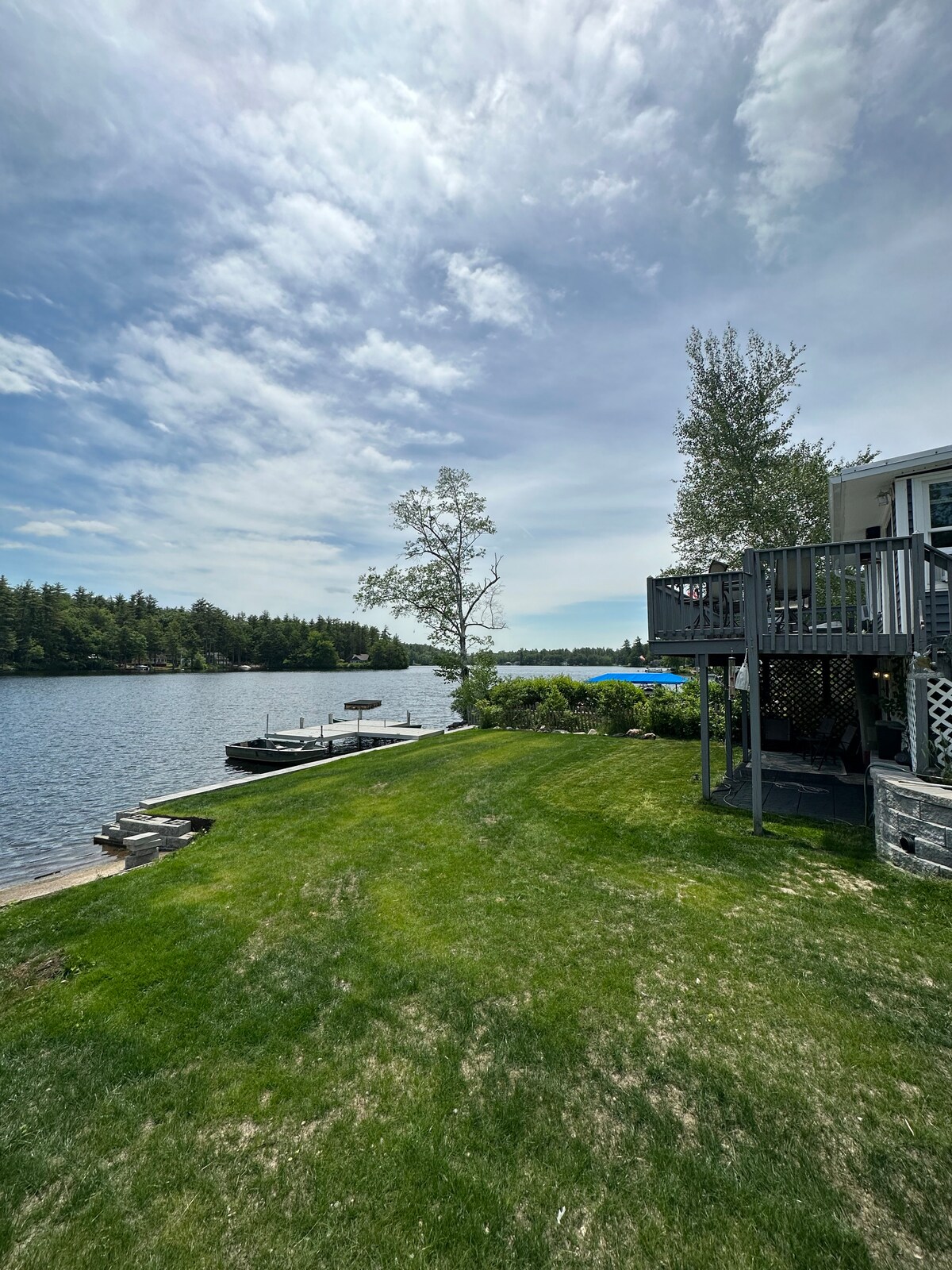 Super confortable, beau chalet juste au bord du lac et des chemins de terre. Cour : coin salon, foyer au propane, cour clôturée. À l'intérieur, il y a des espaces de lecture, des DVD, le Wi-Fi, des livres, des livres de coloriage, des puzzles, des jeux. Profitez de la barque et des kayaks ou apportez votre propre bateau. Nous sommes sur Antique Ally et les parcs d'État sont à proximité (à 2 miles). Profitez d'une journée à Chucksters, Concord, Portsmouth ou dans la région des lacs. Profitez de la VIE DU LAC ! Pas d'animaux (problème de santé pour le nettoyeur) 4 adultes ou 2 adultes 3 enfants. Gilets de sauvetage fournis.