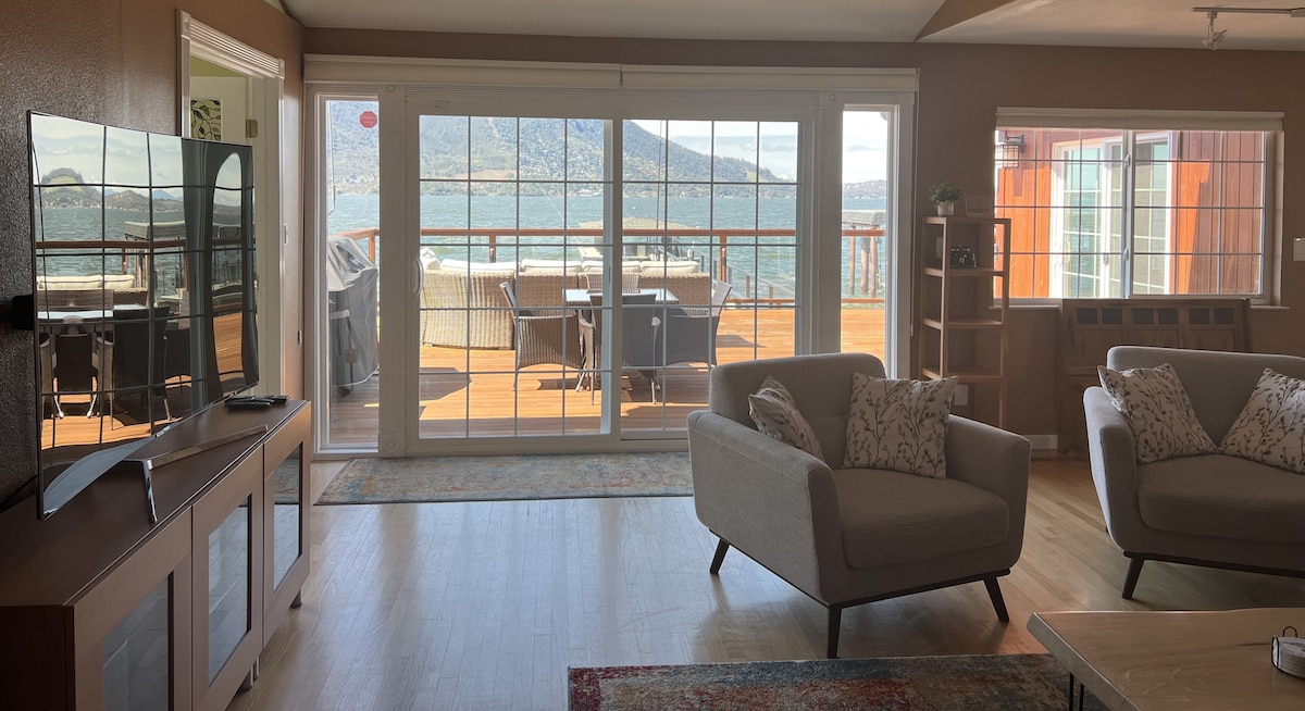 Experience the tranquility of lakeside living at the Bee Haus, perfect for a couple or small group seeking a peaceful escape. This charming retreat boasts sweeping waterfront views, high ceilings, an open concept living space, wraparound deck, and PRIVATE DOCK! Truly the perfect blend of modern comfort and natural beauty. When you’re ready for adventure, explore the lake by kayak, rent a speed boat/ jet skis, hike Mt. Konocti, wine taste at the Mercantile, or fish straight from our private dock!