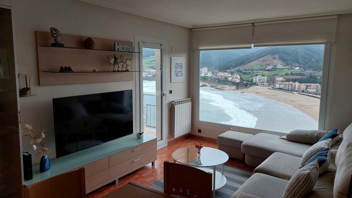 Bel appartement avec une vue spectaculaire sur mer et à San Juan de Gaztelugatxe. Situé très près de la plage de Bakio, à 20 km de l'aéroport et à 28 km de Bilbao. Il dispose d'un salon-salle à manger, cuisine, salle de bain, deux chambres doubles et terrasse ainsi que parking communautaire et ascenseur, entièrement équipé (wifi, télévision, etc...) Un endroit fantastique pour profiter de la mer, de la montagne, de la gastronomie et de la culture à toute époque de l'année ! ! !