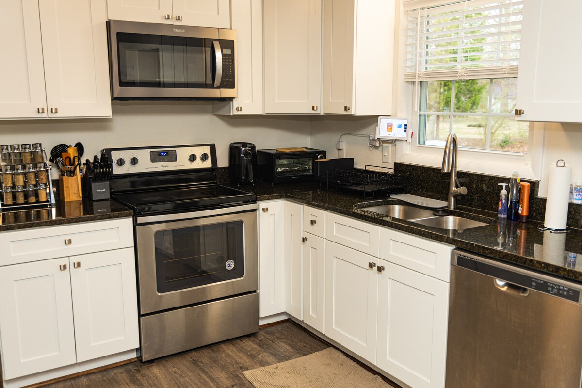 Évadez-vous dans cette maison d'hôtes magnifiquement rénovée, conçue pour un séjour inoubliable. Nichée dans un cadre serein de 6,5 acres avec vue privée sur le ruisseau, elle se trouve à quelques minutes des commerces, des brasseries et des restaurants. Réveillez-vous avec des paysages à couper le souffle, détendez-vous dans un cadre paisible et profitez d'équipements modernes. Détendez-vous près du foyer ou plongez dans le jacuzzi. Parfait pour une retraite romantique ou une escapade amusante en famille dans le Triangle historique. Confort, charme et détente inégalés : votre escapade parfaite vous attend !