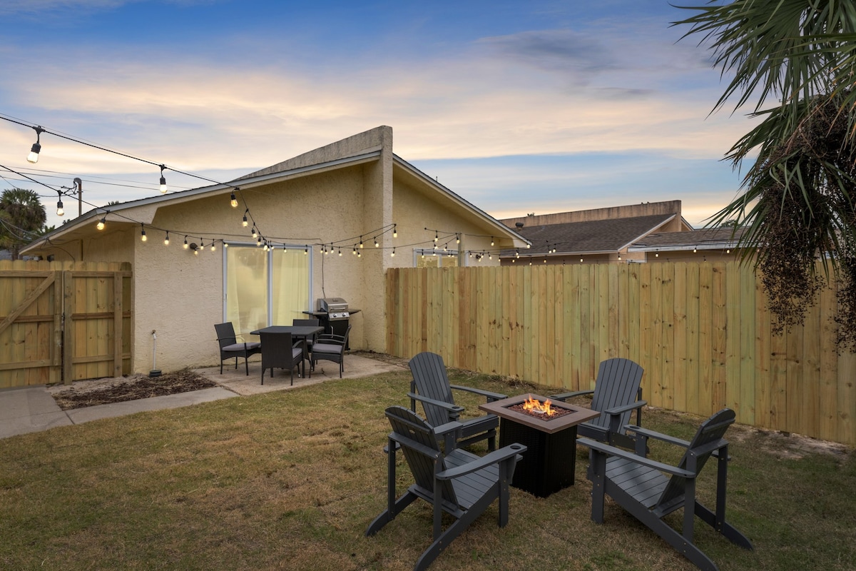 Bienvenue chez vous, loin de chez vous ! Notre chalet de plage entièrement rénové et moderne est l'endroit idéal pour se détendre et se ressourcer, que ce soit en se prélassant dans notre salon lumineux et confortable, en passant la journée à la plage (à 3 pâtés de maisons à pied) ou en sirotant votre boisson préférée près du feu dans le jardin. Nous sommes situés entre 30a et Pier Park avec de nombreux restaurants, magasins et vie nocturne incroyables à découvrir. Venez séjourner chez nous, nous sommes toujours ouverts ! Suivez-nous sur IG @its.alwaysopen