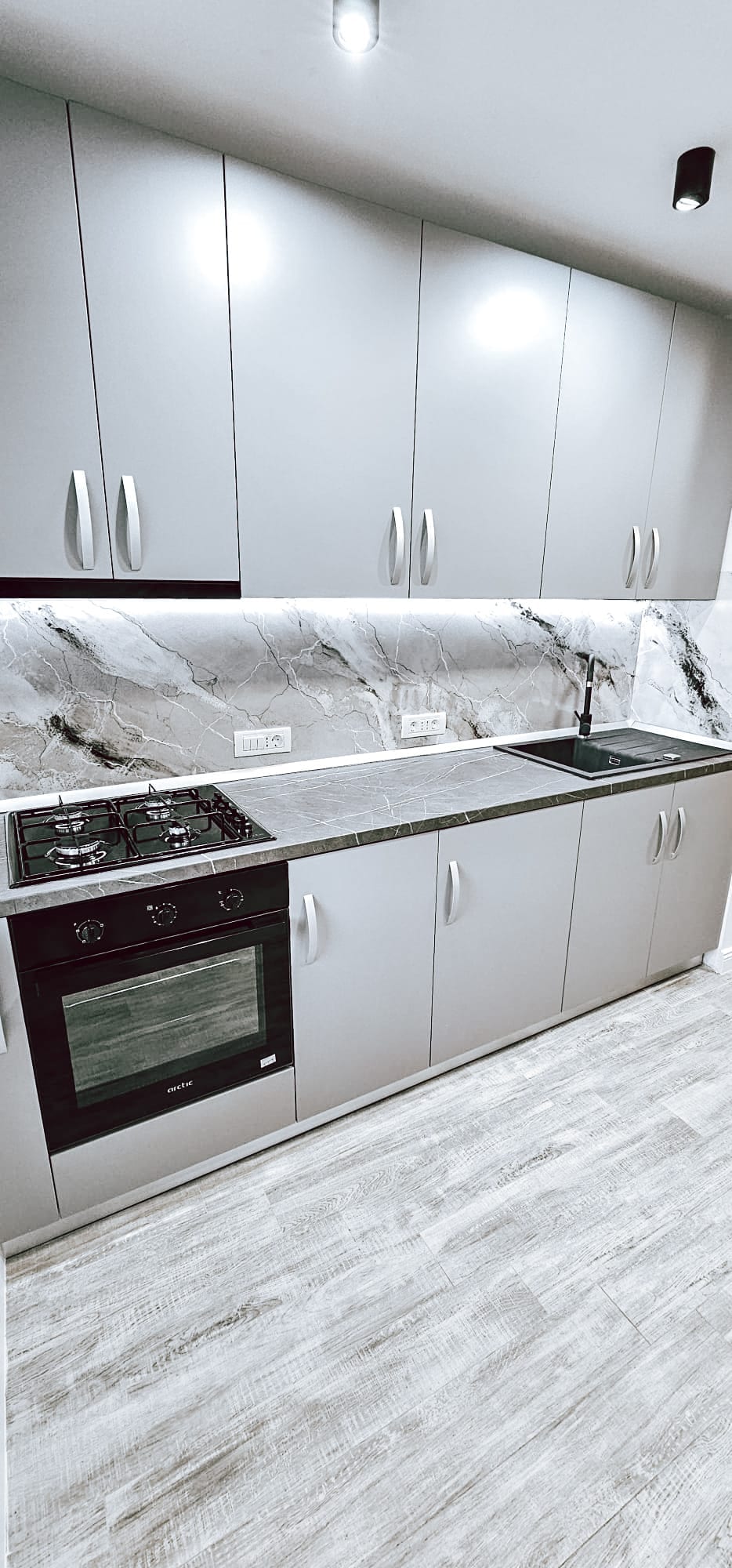 Appartement spacieux et confortable, très efficace cloisonné,avec une cuisine généreuse,équipée de nouveaux appareils. Il dispose de 3 chambres, 1 salle de bain, chauffage central et chauffage au sol. Il est aménagé dans un style élégant et moderne,entièrement meublé et équipé et bénéficie de finitions et d'équipements haut de gamme,ce qui est achevé en 2024. L'appartement est au rez de chaussée, dispose d'une place de parking devant le pâté de maisons et est situé à quelques minutes à pied du centre ville.