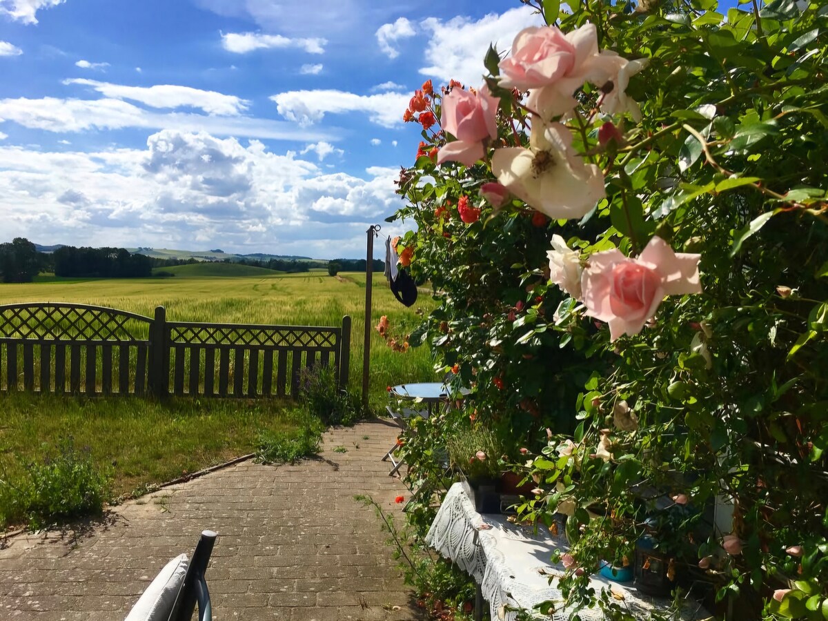 Le privé est un appartement spacieux avec son propre jardin privé. Il peut accueillir 4 personnes dans deux chambres. La maison comprend une buanderie/entrée avec buanderie, salle de bain, belle cuisine lumineuse avec salle à manger. Chambre double spacieuse avec un bon espace de rangement. Chambre supplémentaire pour par exemple les enfants avec un lit de 140 cm (salle de visite). Joli salon lumineux et spacieux où la famille peut s'amuser et accéder au grand jardin et à l'environnement confortable de la terrasse avec barbecue. Les chiens sont également les bienvenus.