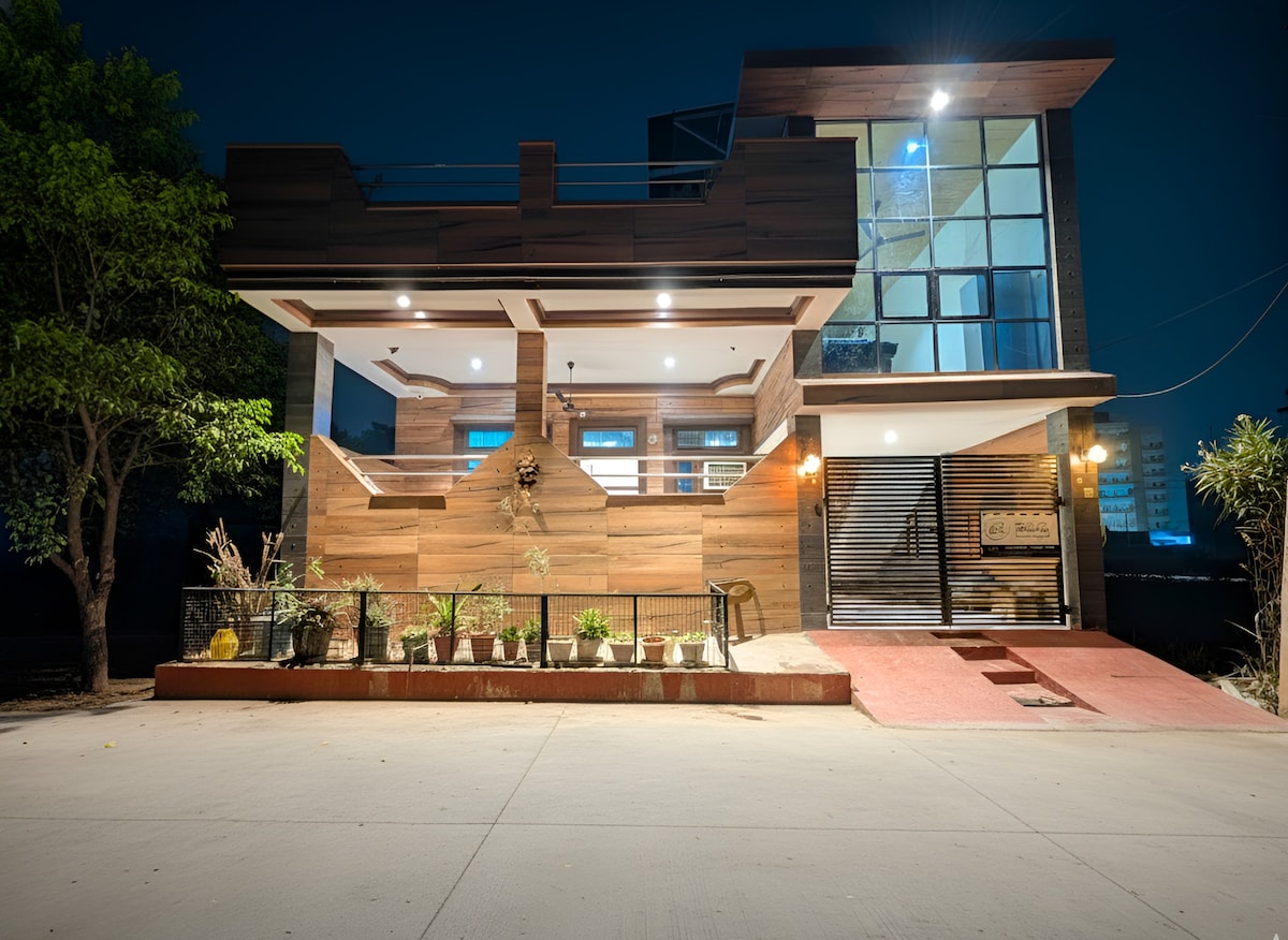 Que vous voyagiez pour les vacances ou le travail, vous disposerez d'un appartement privé pour vous et votre famille, équipé d'équipements modernes comme le Wi-Fi, une télévision intelligente de 55 pouces, un lave-linge, un micro-ondes et plus encore, un quartier paisible dans le quartier résidentiel, afin que vous puissiez amener la famille dans ce superbe endroit avec beaucoup de place pour s'amuser. C'est un endroit cool. C'est agréable et hygiénique, c'est à 10 minutes du fort de Neemrana et à 5 minutes de la route nationale NH8 ! Beaucoup d'options de restauration.