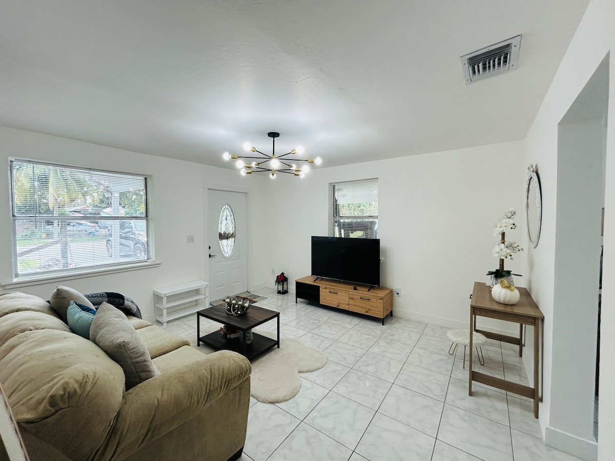 Installez-vous confortablement dans ce chalet situé au centre. Situé à quelques minutes des plages, du centre-ville de West Palm Beach, de l'aéroport, du zoo, du musée des sciences et plus encore. Avec une cour entièrement clôturée, vous pouvez vous sentir à l'aise en laissant votre ami à quatre pattes se promener pendant que vous sirotez votre café du matin sur le patio avant ou que vous prenez un bain de soleil dans le hamac. Profitez d'une connexion Wi-Fi rapide et gratuite, de téléviseurs intelligents dans le séjour et la chambre, d'un grand dressing, d'une douche spacieuse et des essentiels de plage fournis.