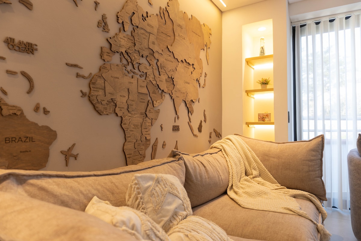 C'est un appartement lumineux et central à Bello Cabañas. Il dispose de deux salles de bains complètes, salle à manger, poste de travail, cuisine. Il dispose de trois chambres, chacune avec son propre placard. La chambre principale dispose d'un lit queen size, d'une salle de bain privée. Il est à 5 minutes à pied des centres commerciaux tels que Fabricato et Metro Bello, où vous trouverez une grande variété de restaurants, de magasins, etc. C'est un appartement entièrement équipé pour les clients individuels ou les familles.