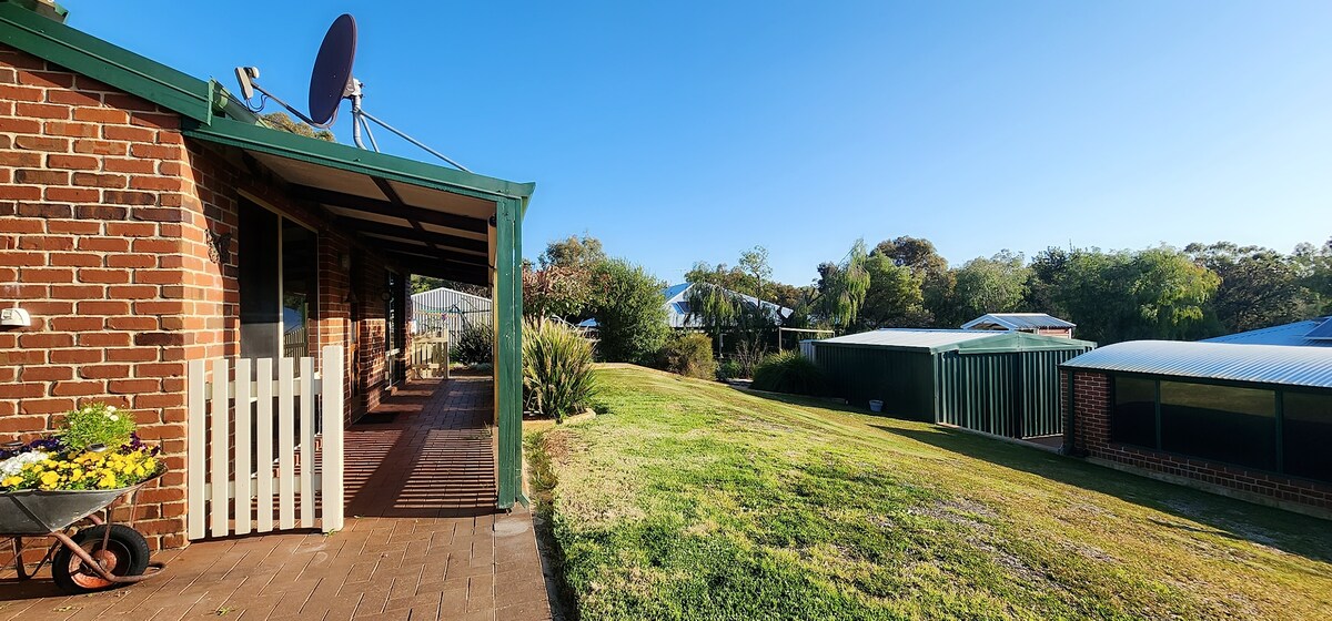 Espace de vie séparé détendu et confortable avec lit queen size et salle de bains privative, donnant sur les jardins et le foyer. À distance de marche de la plage (500 m), de la Hungry Hollow Tavern (1 km) et du Bunbury Wildlife Park (1,3 km). Les voyageurs ont accès à la buanderie de la résidence principale. Il y a un accès latéral privé au bungalow avec un parking gratuit disponible sur place.