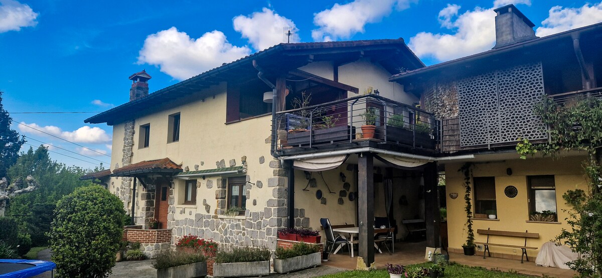 Nous l'inaugurons en juillet ! Déconnecte-toi de la routine dans ce logement unique et relaxant. Il est situé dans une maison récemment rénovée avec beaucoup d'enthousiasme et d'amour. La maison dispose de toutes les commodités : bonne connexion Internet, salon-cuisine complète, deux chambres, une salle de bains et une terrasse avec de belles vues sur le rocher Etxauri. Il dispose d'un patio et d'un jardin partagé avec d'autres personnes qui séjournent dans l'autre appartement de la maison. Profitez des barbecues, reposez-vous dans un hamac, ...