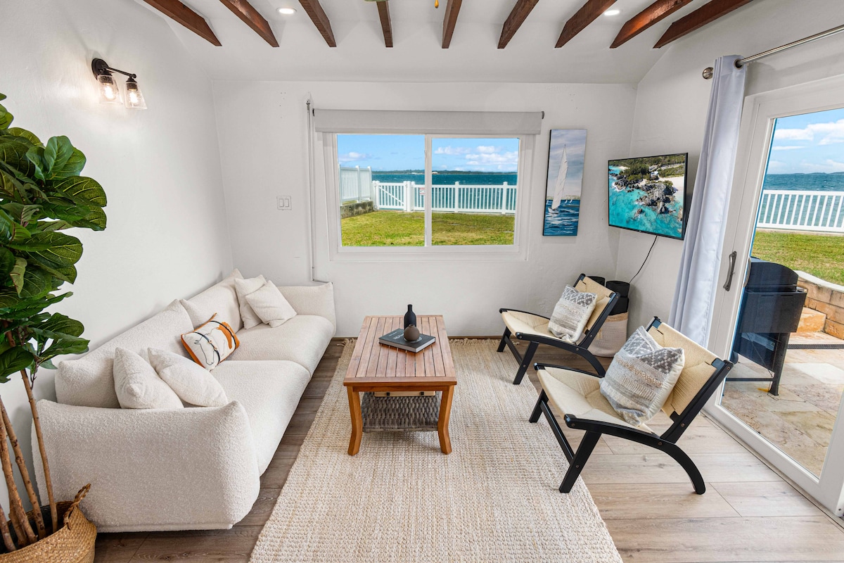 Studio moderne en bord de mer avec vue panoramique imprenable sur les eaux turquoise exquises au large de la côte sud accidentée. Lumineux et aéré avec une ambiance insulaire décontractée et minimaliste. Kitchenette bien équipée, parfaite pour préparer le café du matin ou de petits repas simples à déguster dans le confort du studio ou sur le patio dans l'air frais de l'océan. Emplacement central à 10-15 minutes en voiture de la ville de Hamilton et à proximité de nombreuses plages, restaurants et attractions des Bermudes.
