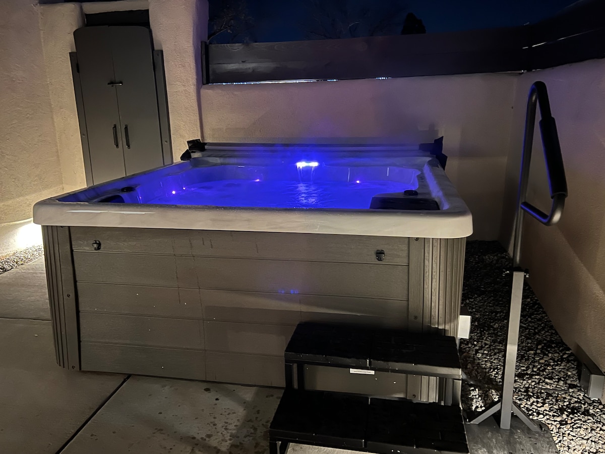 Bienvenue à Mountain View Escape, à quelques minutes des balades en montgolfière près du pittoresque Rio Grande ! Plongez dans le jacuzzi, allumez le barbecue, détendez-vous dans la cour spacieuse avec une vue imprenable sur la montagne et des sièges confortables. Le matin, de 6 h à 7 h, observez les montgolfières flotter du mercredi au dimanche. À l'intérieur, 4 lits ultra-confortables, cuisine entièrement équipée, Wi-Fi rapide, télévision connectée, espaces de vie lumineux et ouverts. À quelques minutes des parcs, des sentiers, des musées et de la vieille ville historique, cette maison offre un véritable confort et charme du sud-ouest.
