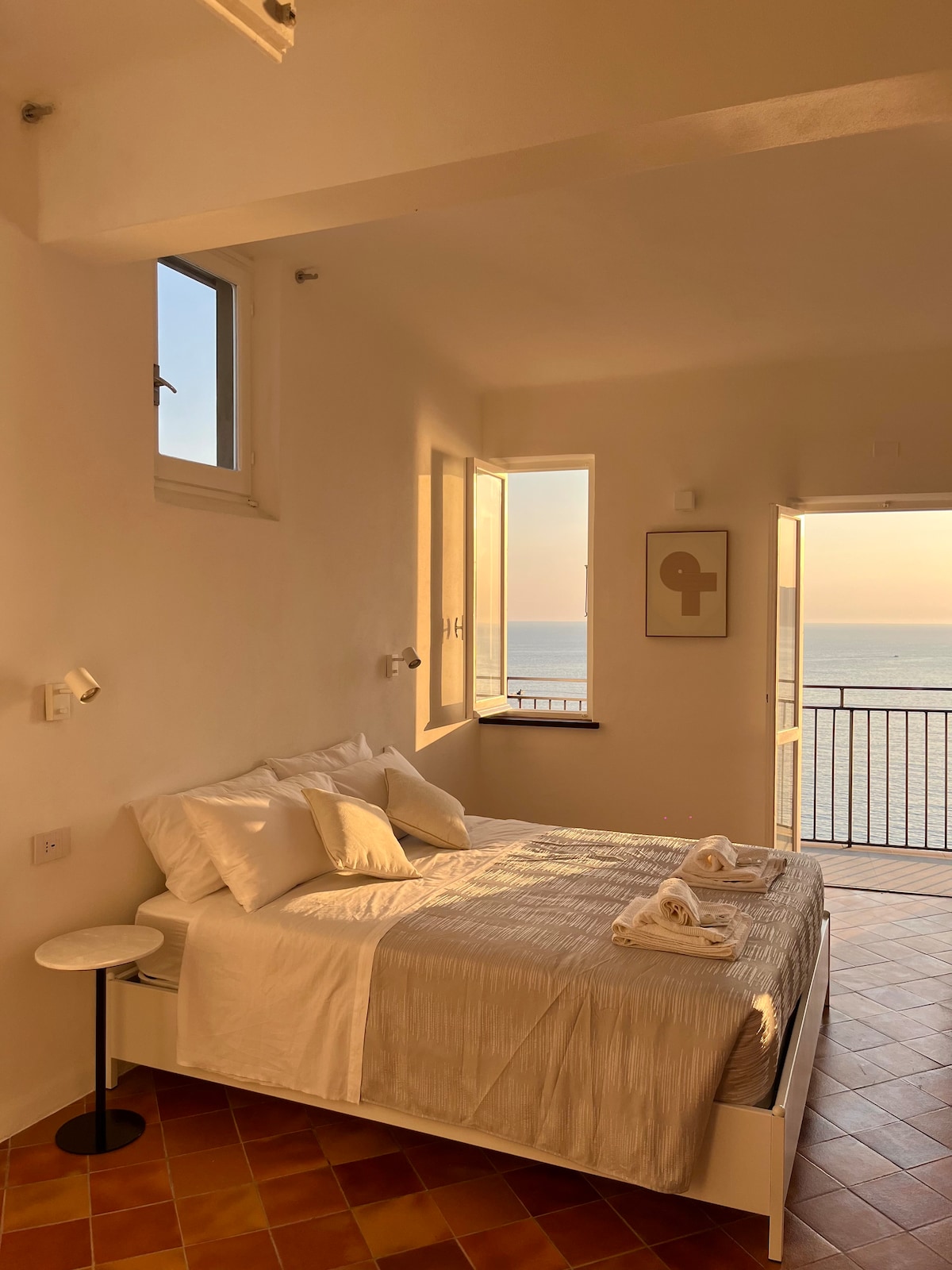 L’appartement est un refuge lumineux et accueillant, idéal pour les couples, les familles ou les amis qui veulent vivre les 5 Terre avec calme et confort. À l’intérieur, vous trouverez une cuisine moderne et spacieuse équipée pour préparer des petits déjeuners, des dîners ou des apéritifs avec vue sur la mer sur la terrasse privée avec des chaises longues pour vous détendre après vos activités. 1 chambre double avec linge de lit et lit bébé Dans la salle, vous trouverez un canapé-lit pour 2 personnes