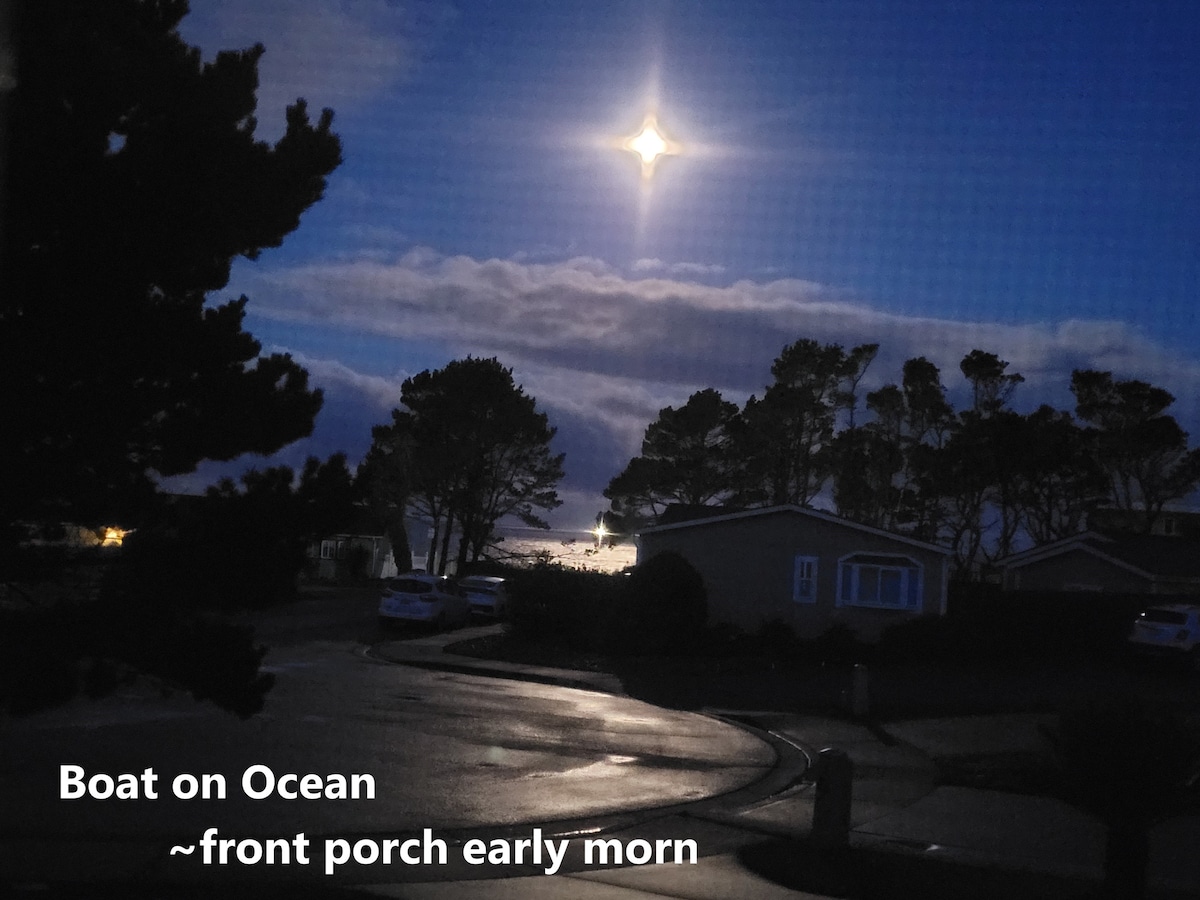 Vous aimez la randonnée, le surf ou peut-être le rafting en eaux vives ou le kayak ? Près de rivières pittoresques, de séquoias géants et bien sûr de l'un des plus beaux littoraux du monde. Nous sommes idéalement situés pour admirer un coucher de soleil, observer les baleines, se promener le long de la plage, chercher dans les mares résiduelles à marée basse ou visiter le phare. Tout cela juste en face. C'est également un emplacement privilégié pour regarder les feux d'artifice le 4 juillet. Il s'agit d'un logement au rez-de-chaussée avec une excellente vue sur l'océan et le phare.