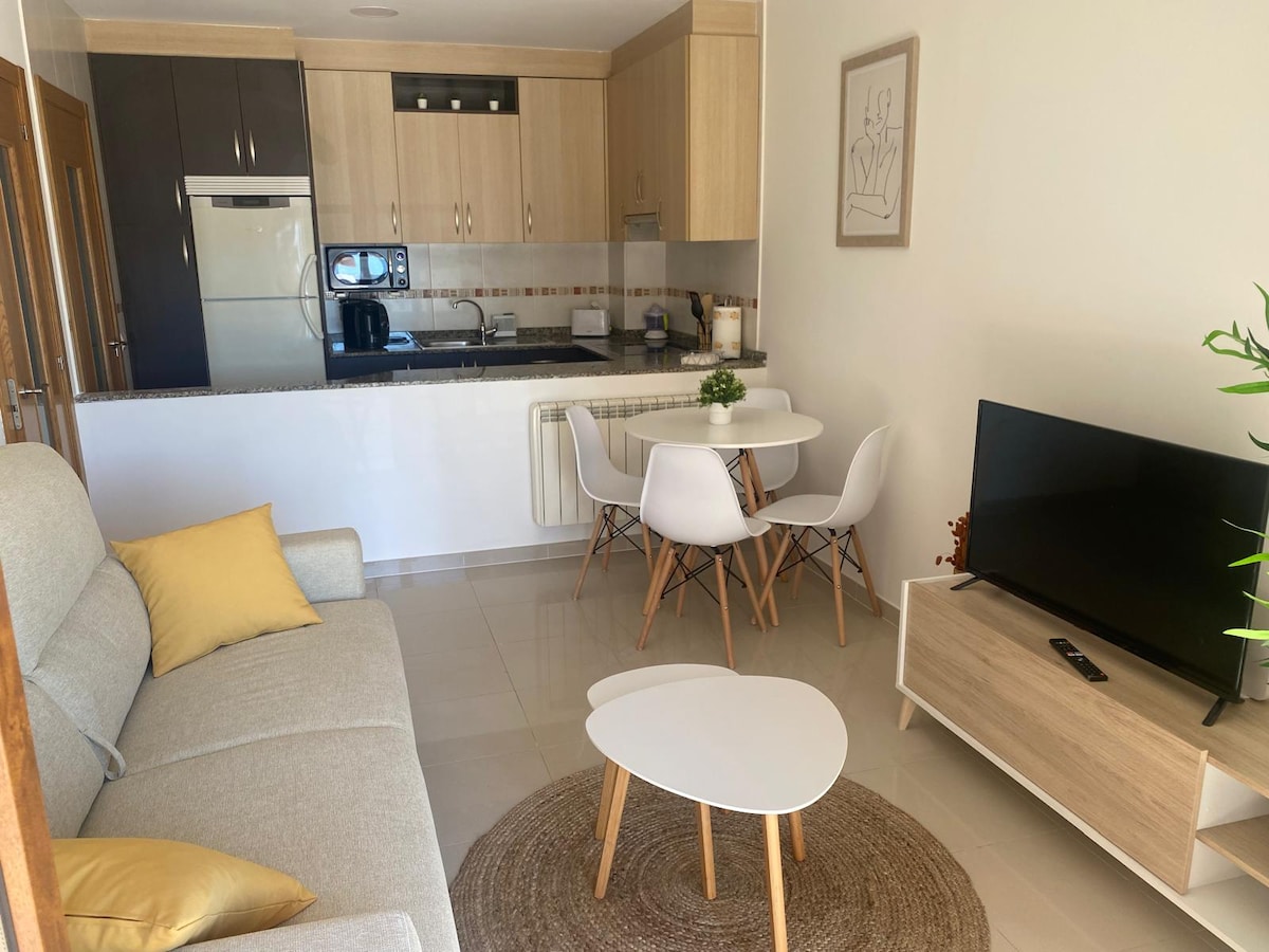 Appartement situé dans un quartier très calme avec vue sur la mer, à 80 mètres de la plage de Caneliñas et à 300 mètres de la plage de Baltar. Le logement est situé au deuxième étage avec ascenseur. Il dispose de 2 chambres, 2 salles de bains, cuisine, salon, balcon et place de parking gratuite dans le même bâtiment. Équipé de tout ce dont vous avez besoin : lave-vaisselle, lave-linge, sèche-linge, four, plaque vitrocéramique, micro-ondes, Smart TV dans le salon et dans la chambre, linge de lit, serviettes et sèche-cheveux.
