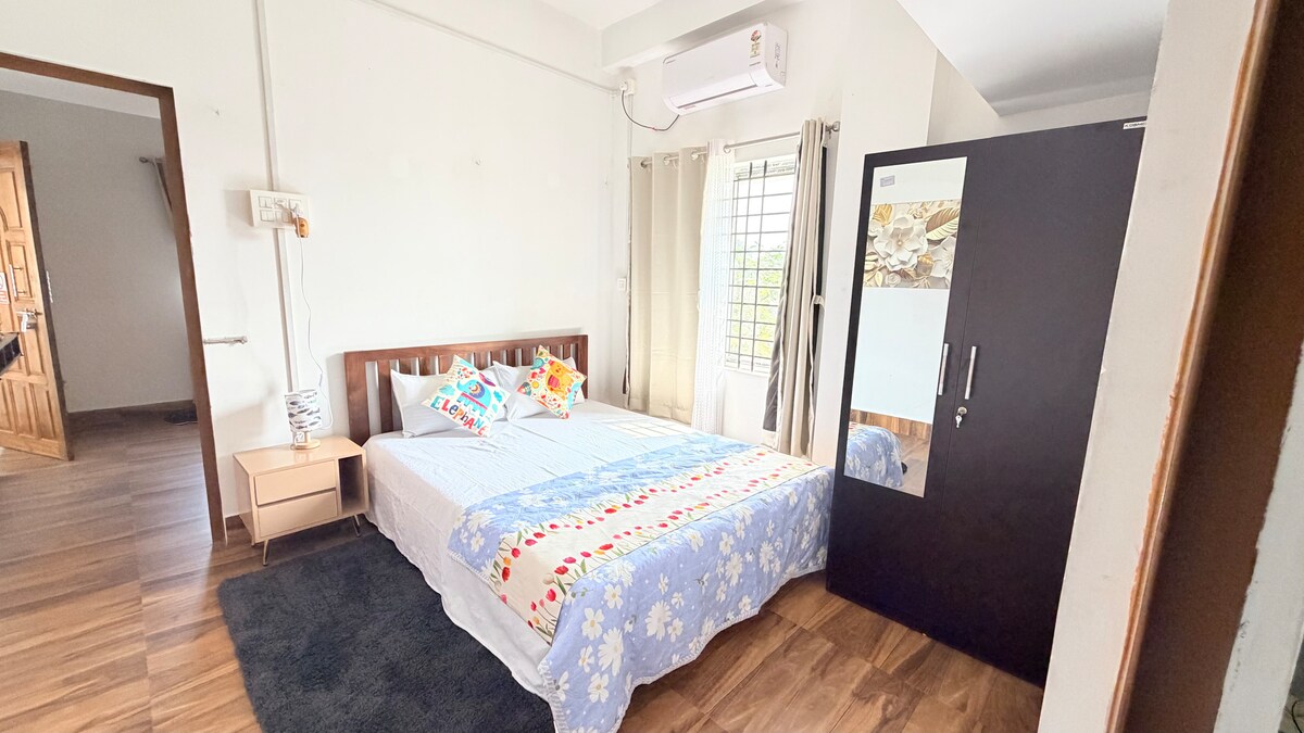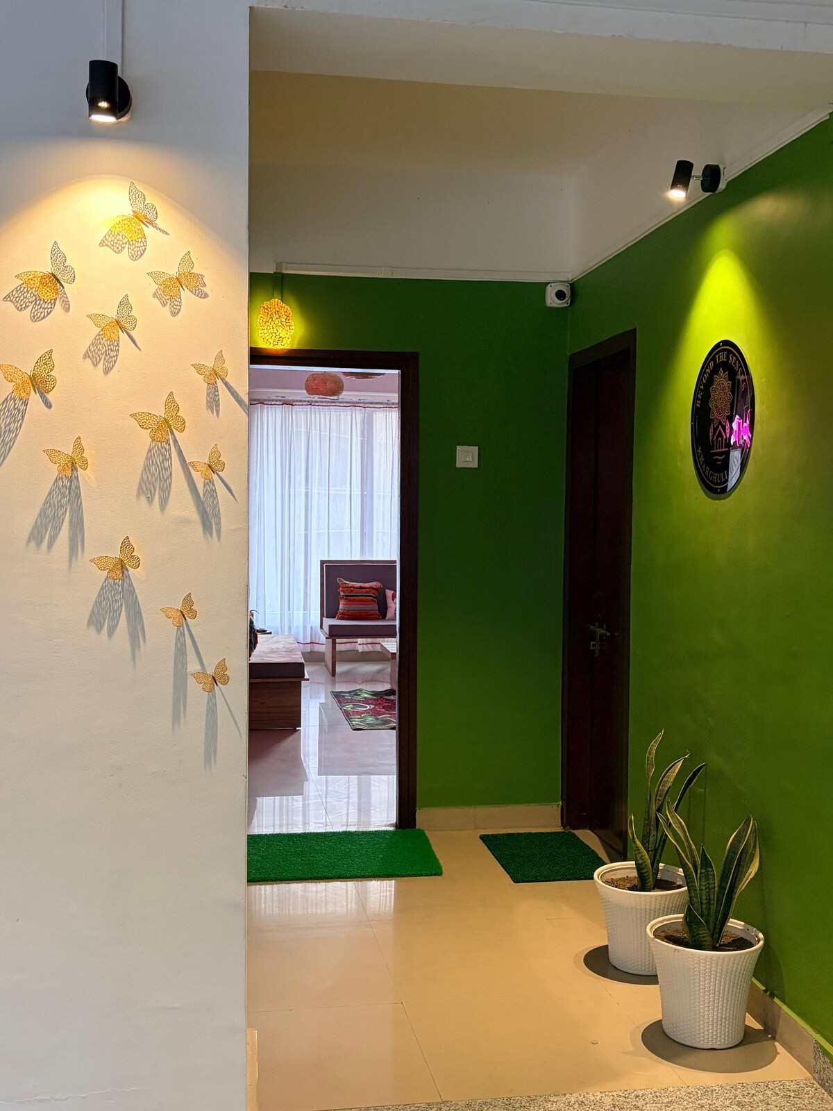 Enjoy a spacious, stylish 2BHK retreat just minutes from the airport-perfect for travelers, couples, and small families. Unwind on your private balcony with calming wetland views and relax in two AC bedrooms with cozy queen beds. The living room offers a comfy couch, smart TV, and a cute photo corner. High-speed WiFi and ample parking add to the ease and comfort of your stay. Crafted for slow mornings, soft light and those "I could stay forever" moments. Welcome to The Veyora journey.