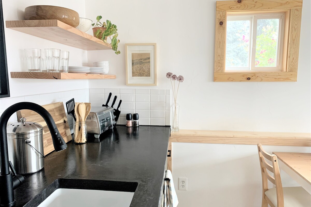 Une charmante petite base pour vos aventures dans les gorges ! Ce petit studio d'une chambre de 200 pieds carrés dispose d'un lit Queen et peut accueillir confortablement 1 à 2 adultes. Il est idéal pour ceux qui recherchent un endroit confortable et calme tout en étant idéalement situé à deux pâtés de maisons du centre-ville de White Salmon. À distance de marche de la boulangerie, de la brasserie, des bars à vin, des restaurants, de l'épicerie, du parc et des kilomètres de sentiers de randonnée pédestre et cyclable.